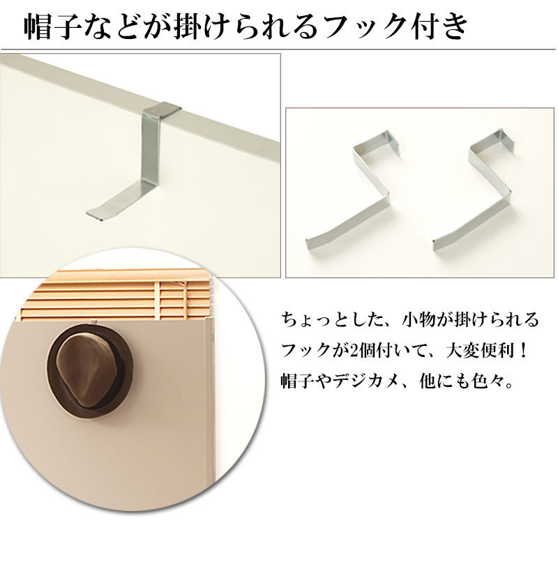 フレーム/スチール(エポキシ樹脂粉体塗装)、パネル/プリント紙化粧繊維板、フック/スチール(メッキ仕上げ)