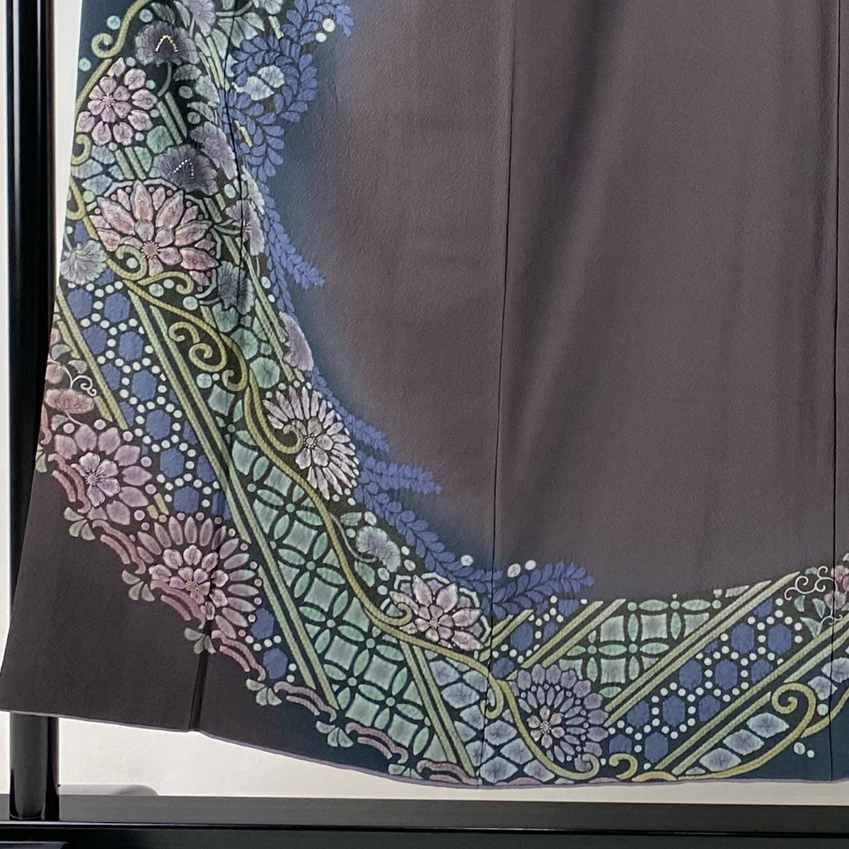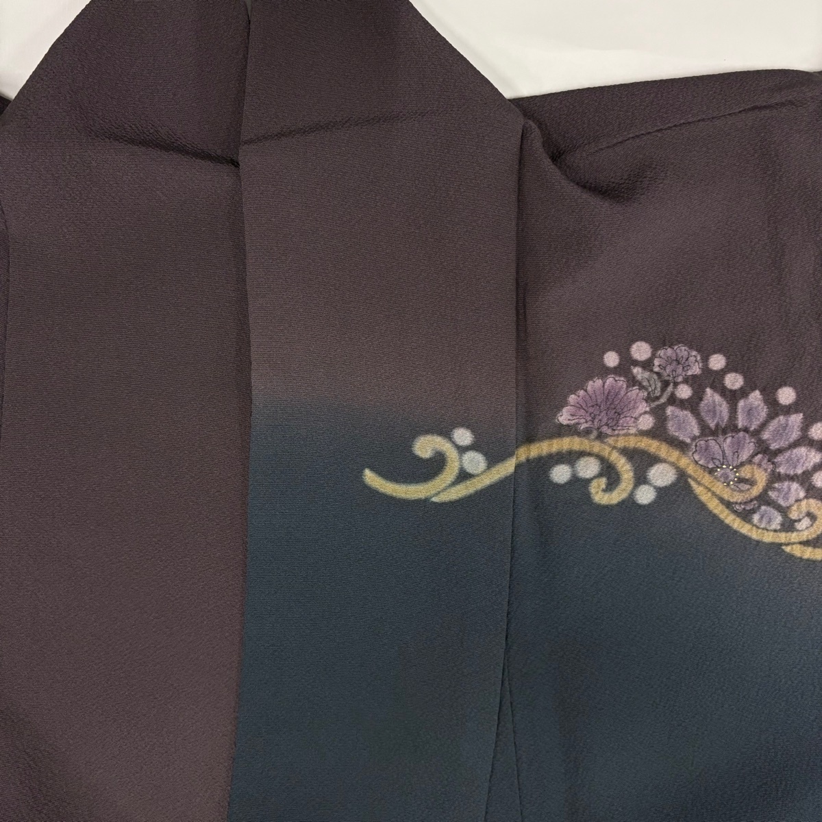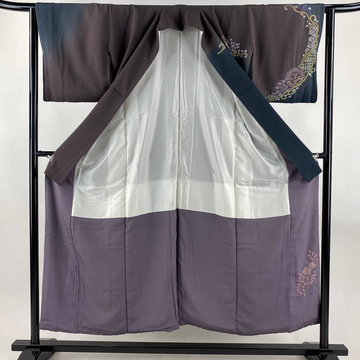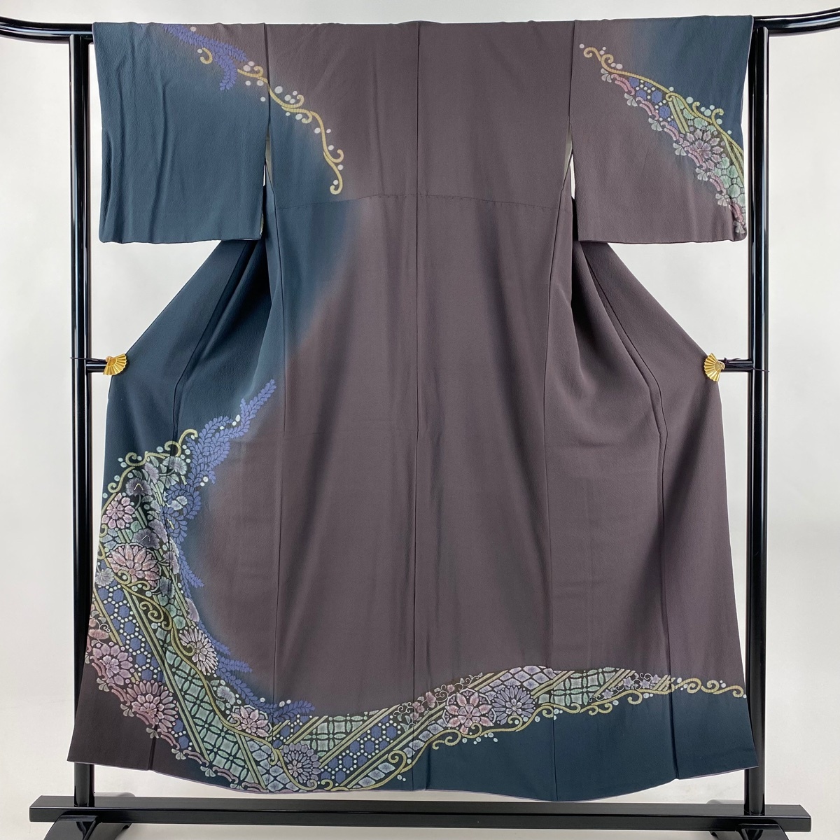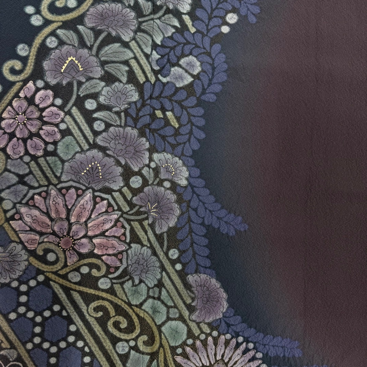 | 訪問着 秀品 草花 金彩 ぼかし 濃紺 袷 身丈151 裄丈63 S 正絹 【中古】 |