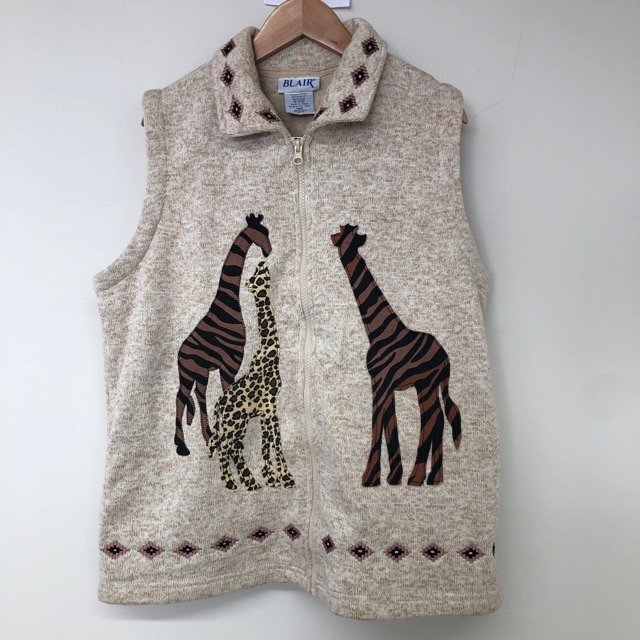 B10 ブレア M アメリカ古着 アニマル柄 ポリエステル フリースベスト ベージュ BLAIR レディース