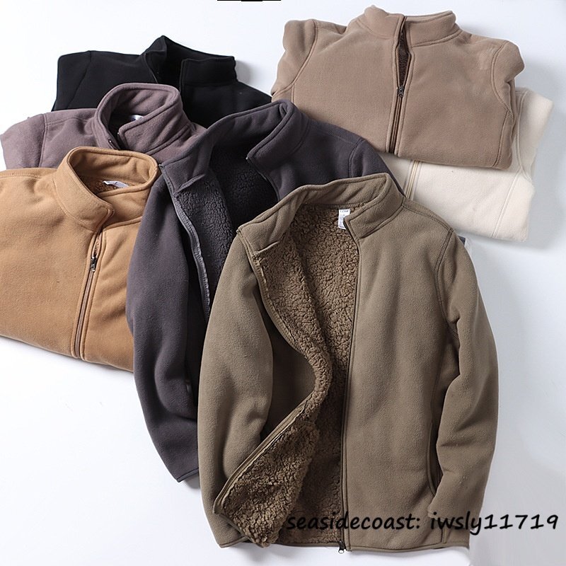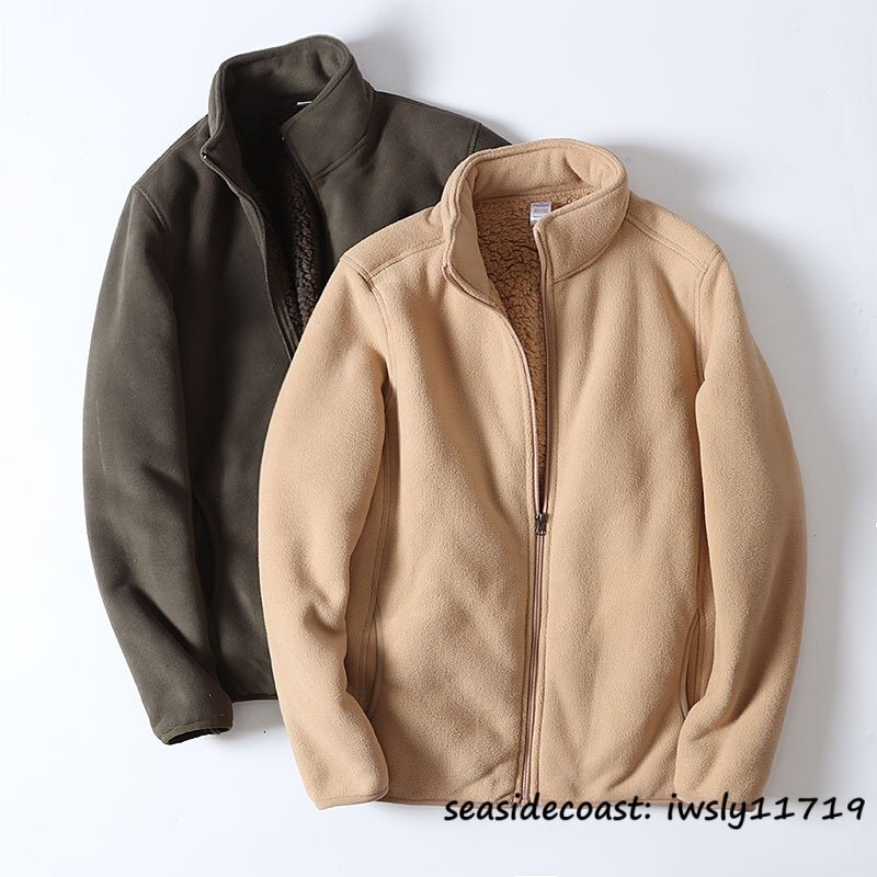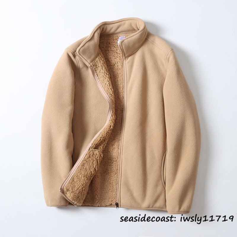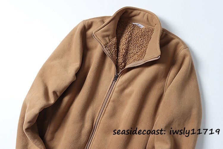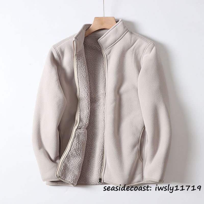 秋冬新品★メンズ スタンドカラー フリースジャケット 裏ボア 厚手 防寒 無地 デザイン ブルゾン アウトドア ゆったり 保温 ホワイト XL