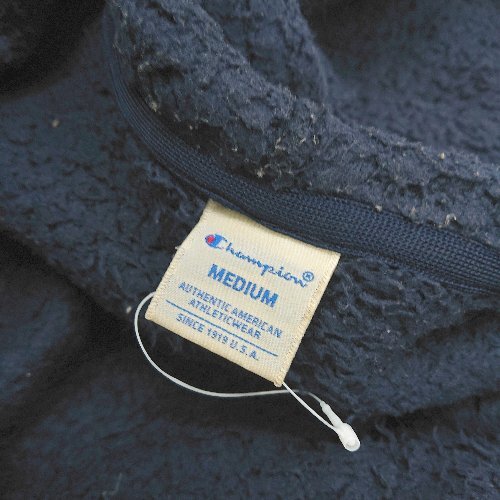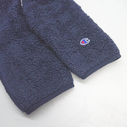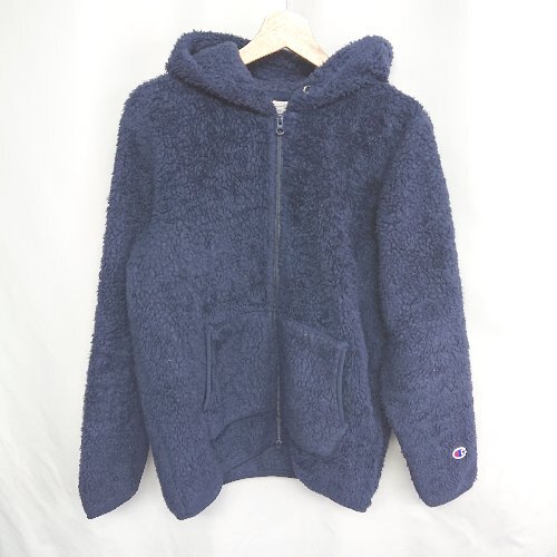 ■ ⊇ Champion ロゴ刺? 長袖 ボアパーカー サイズM ネイビー メンズ E