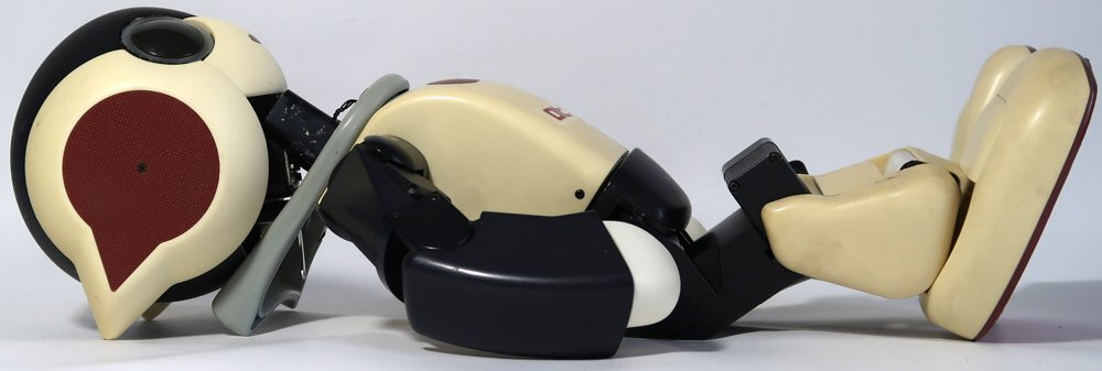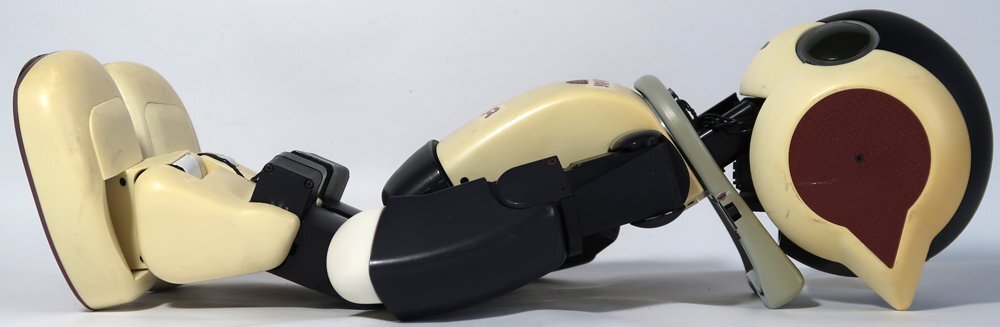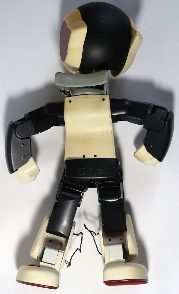出品は画像の物のみです。他に必要な物はご自分でご用意ください。使用品ですので汚れや擦れは有ります。画像をご覧のように完全に完成はされておりません。また首の箇所が破損していて外れています。右足首はサーボやギアが入っていないようなぶらぶらした状態です。分解していないので正確にどのような状態なのかわかりません。私が持っている専用の充電器で充電すると、充電はできました。充電完了後にスイッチオンにすると何か喋って目が青からオレンジに変わりました。バッテリーは消耗品ですのでどの程度保つかわかりません。バッテリーはいかなる状態であったとしてもノークレームです。これ以外の動作はしませんでした。分かることは以上です。お取引後は一切のサポートはしておりません。このような状態ですのでお取引後はいかなる理由がありましても返品はできませんしクレームはお受けできません。