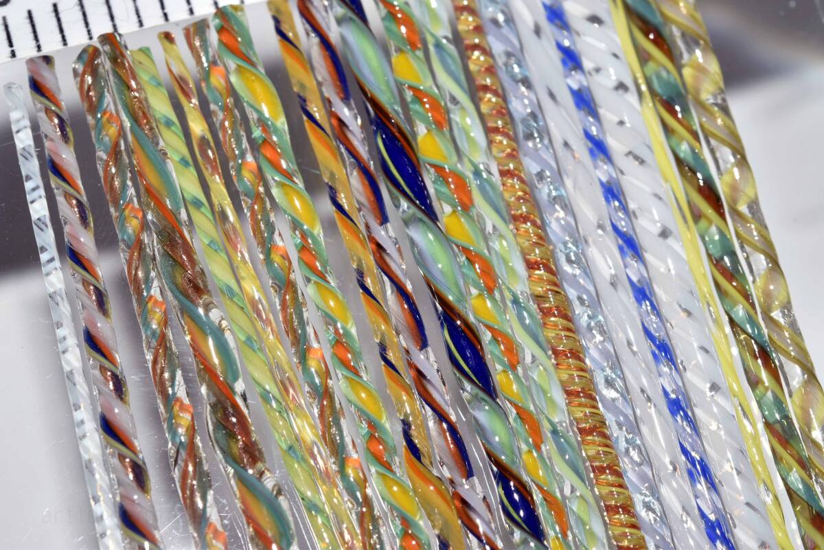 モレッティの細密ガラスレース棒、ツイスト棒、ガラス棒、トンボ玉、万華鏡、