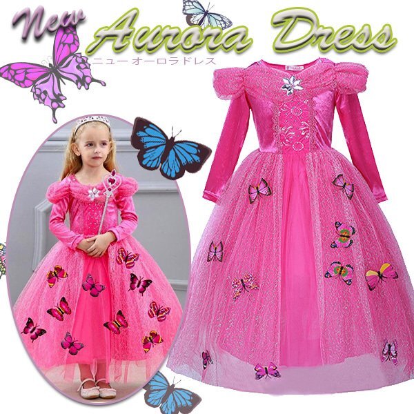 長袖 オーロラドレス 子供用 選べるサイズ 110-140cm ディズニー キッズ 姫 コスプレ 衣装 仮装 コスチューム オーロラ姫 ハロウィン蝶