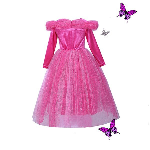 ( 子供用 長袖オーロラドレス / ハロウィン ピンク Aurora Dress 姫 コスプレ 衣装 仮装 パーティ 誕生日 発表会 ドレス コスチューム キッズ プリンセス 子ども クリスマス 韓国子供服 ハロウィーン パーティ イベント 子供会 )
