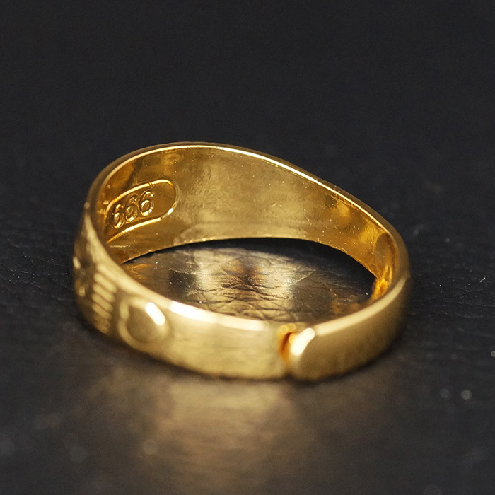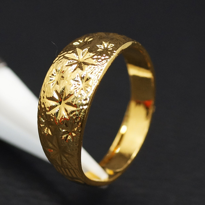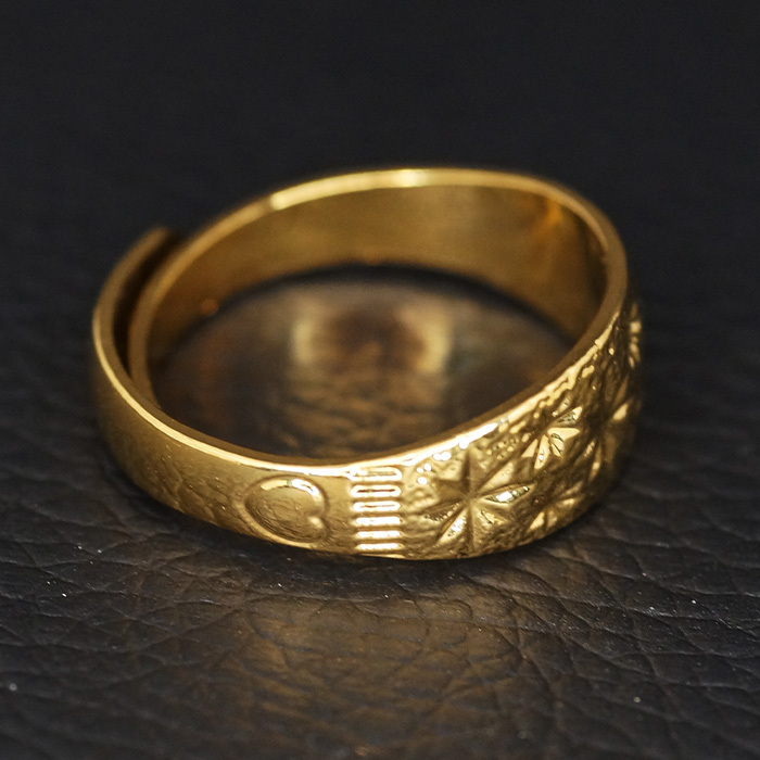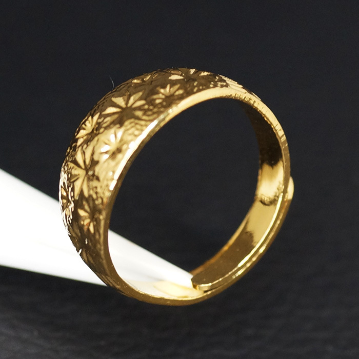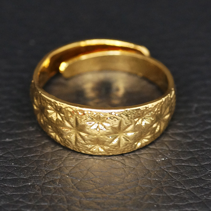 24K Gold Plated フラワー スター カット デザイン 8mm ワイド フリーサイズ ゴールド 巻指輪 リング です。