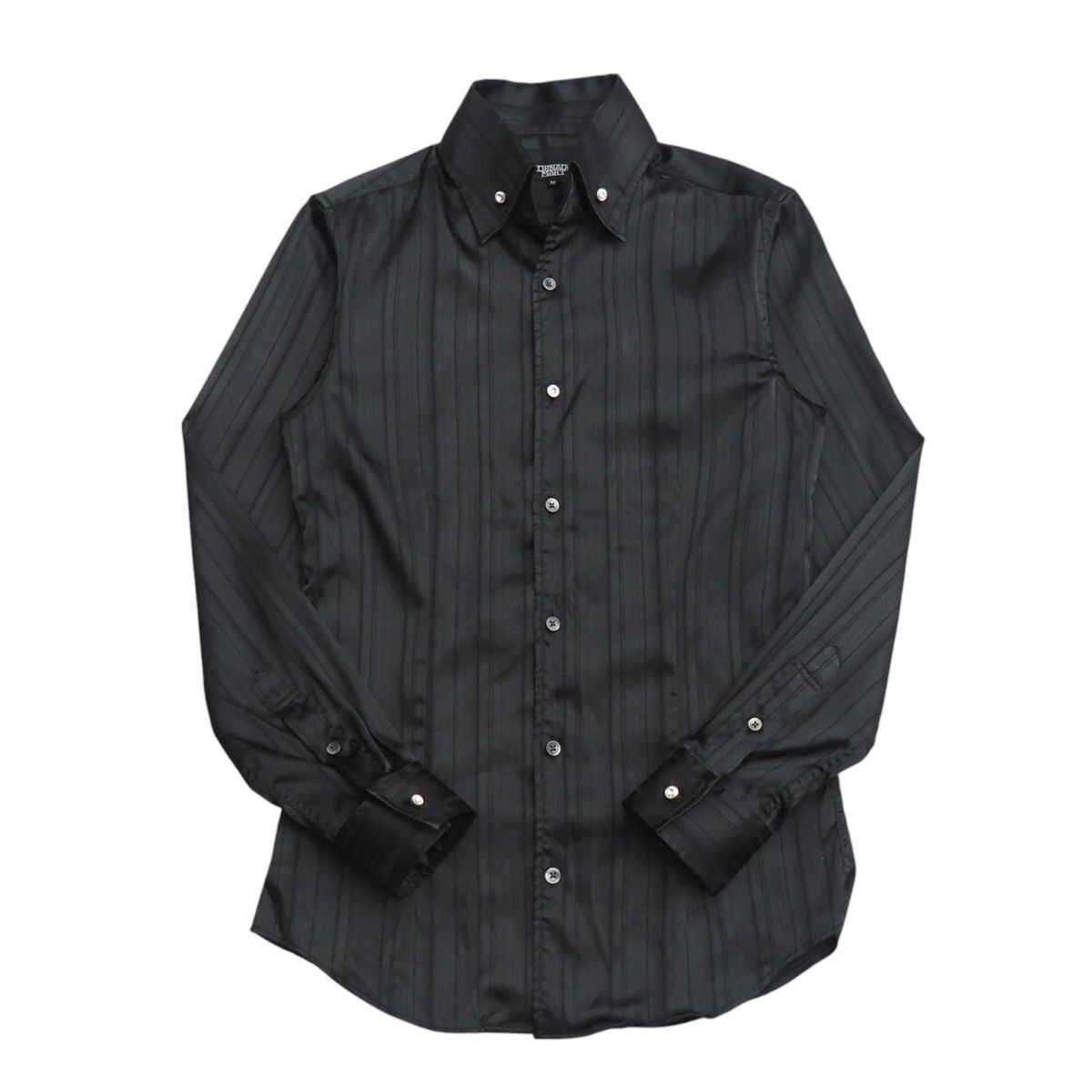 | TJ6708+Y2K/Archive*TORNADO MART/トルネードマート*メンズM*ボタンダウンシャツ*ストライプシャツ*ビジューボタン*ブラック系 | |||