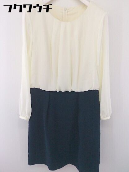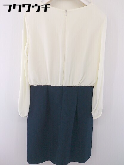 ◇ NATURAL BEAUTY BASIC 長袖 膝丈 ワンピース サイズM オフホワイト ネイビー レディース