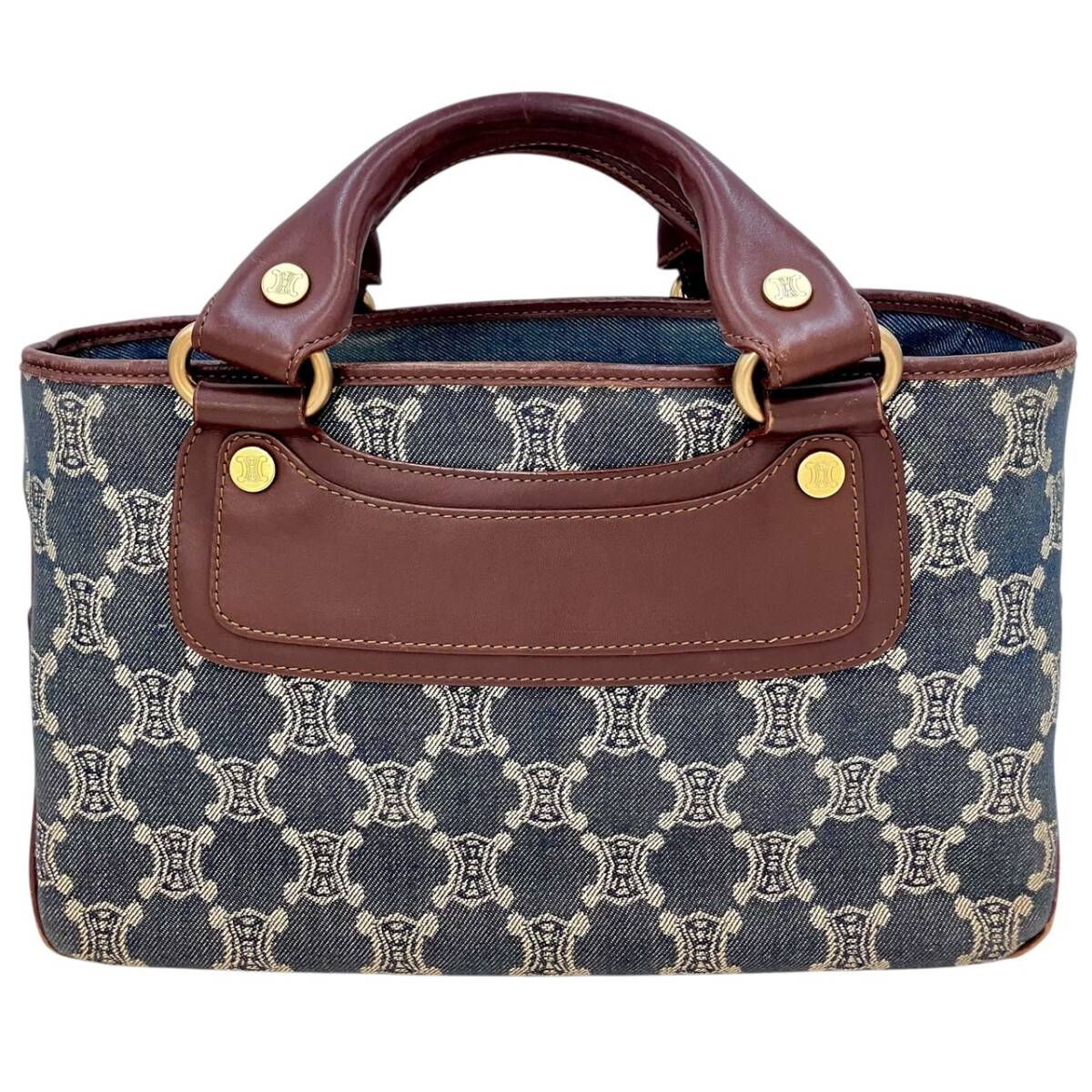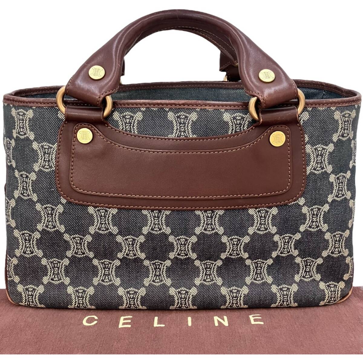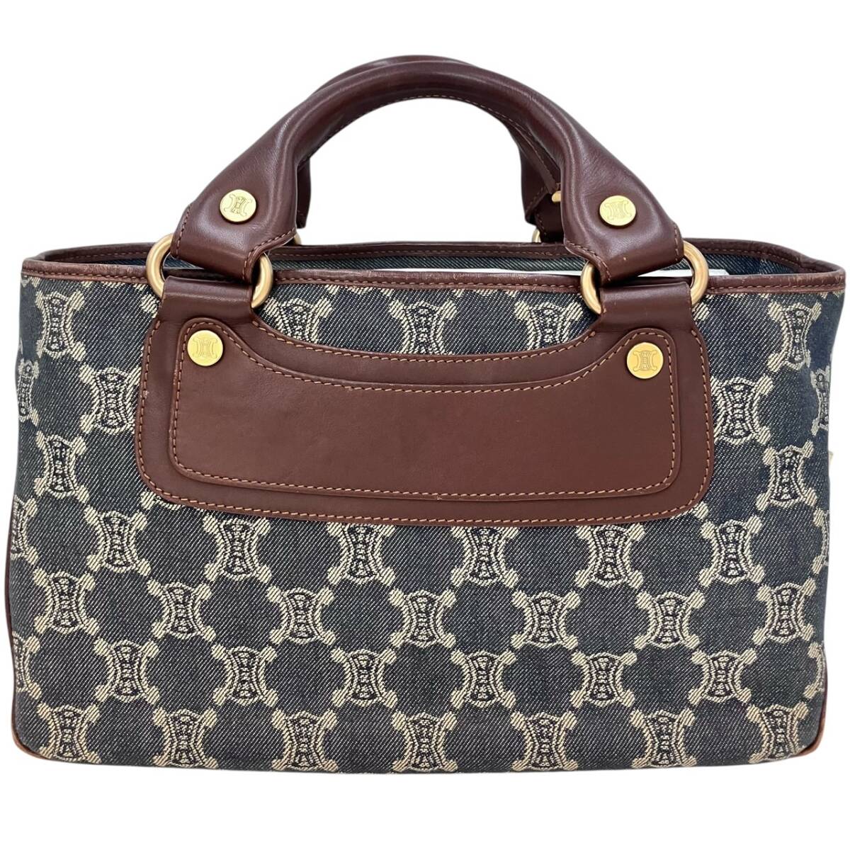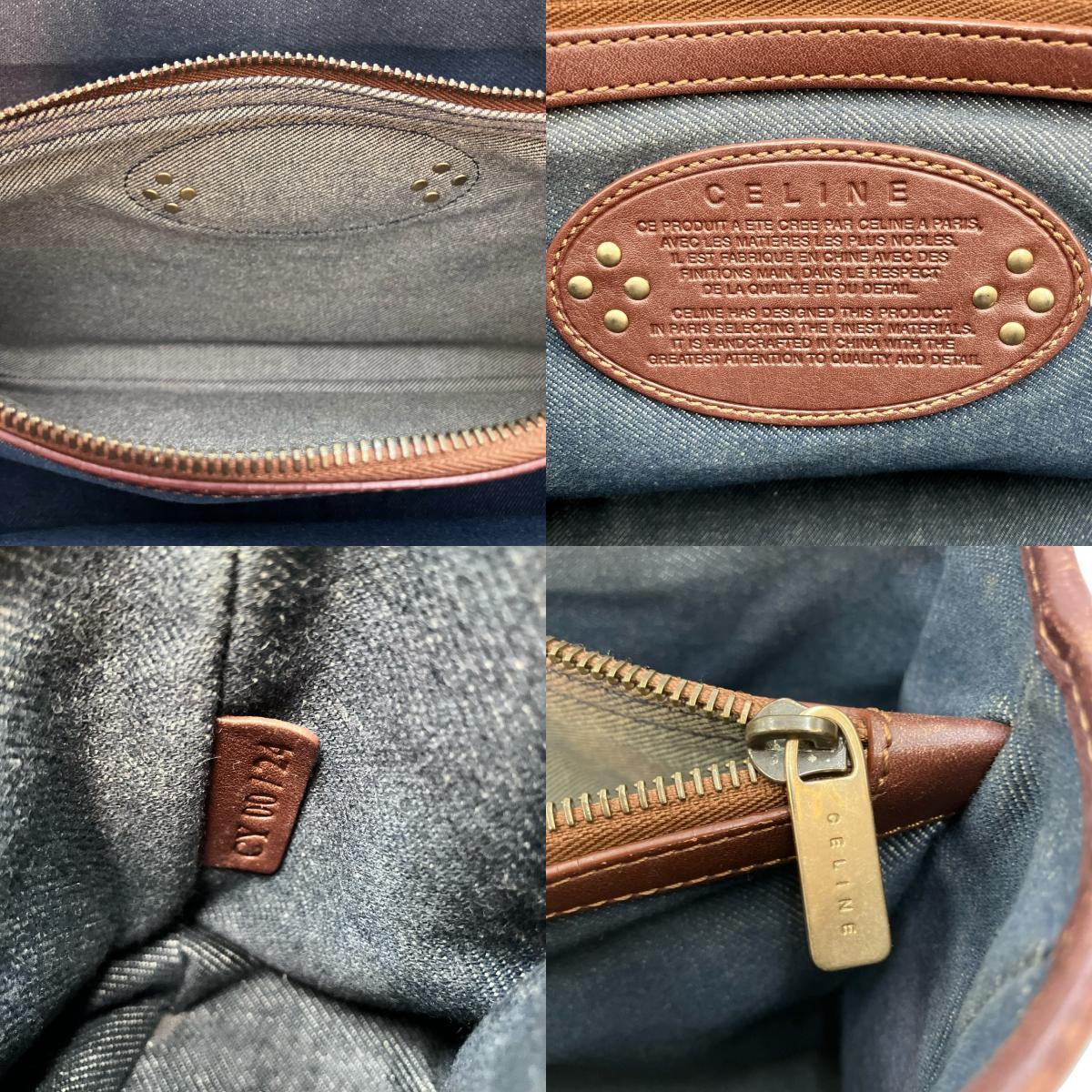 | CELINE セリーヌ ブギーバッグ ハンド バッグ デニム キャンバス インディゴブルー ブラウン レザー ゴールド金具 レディース |