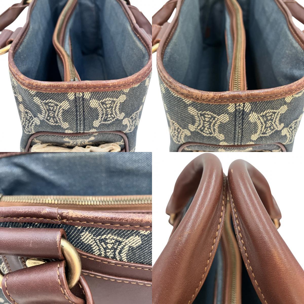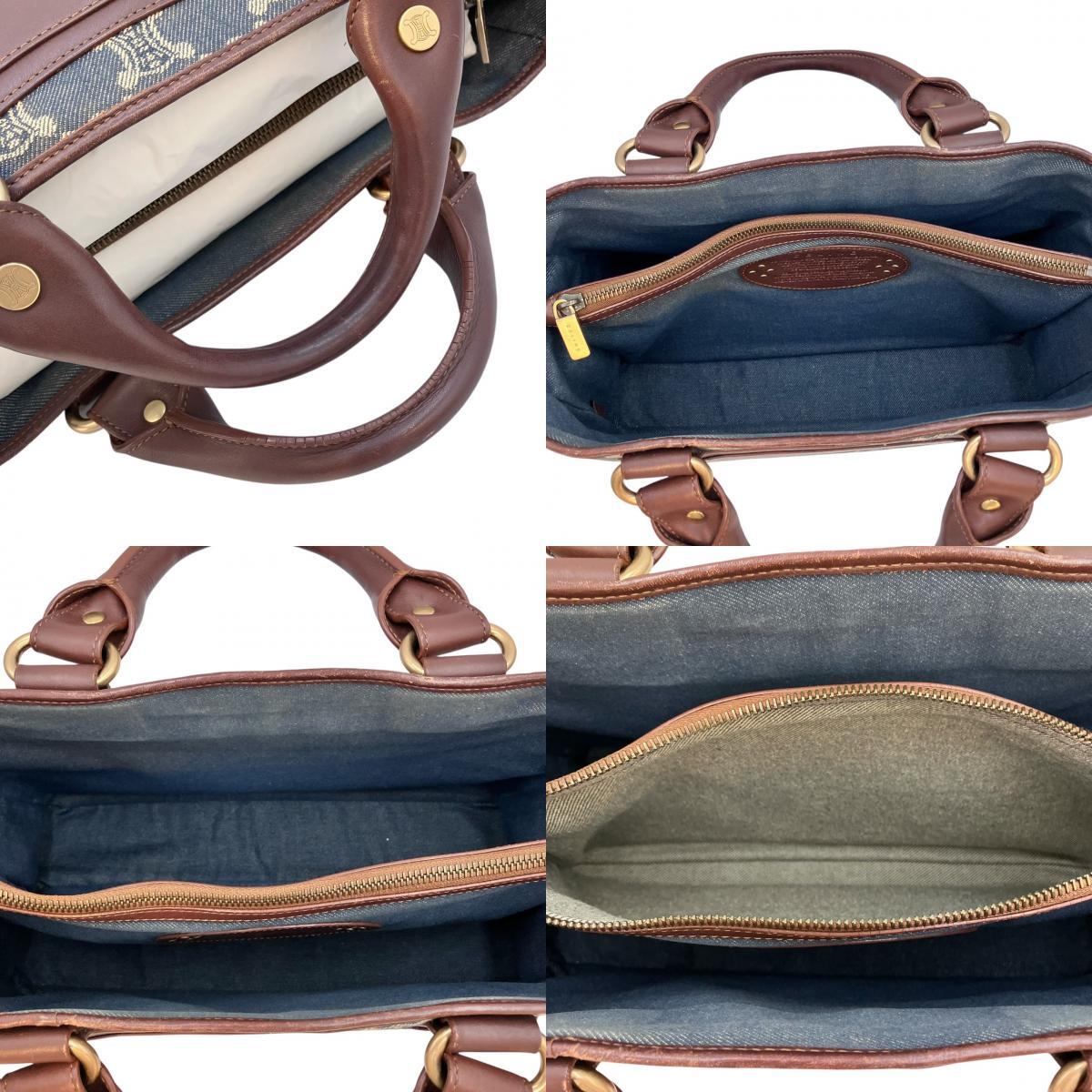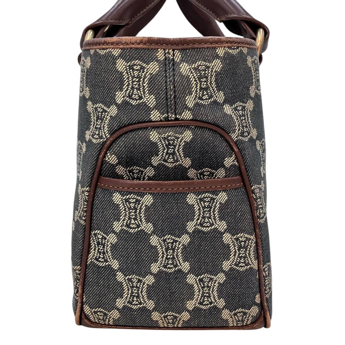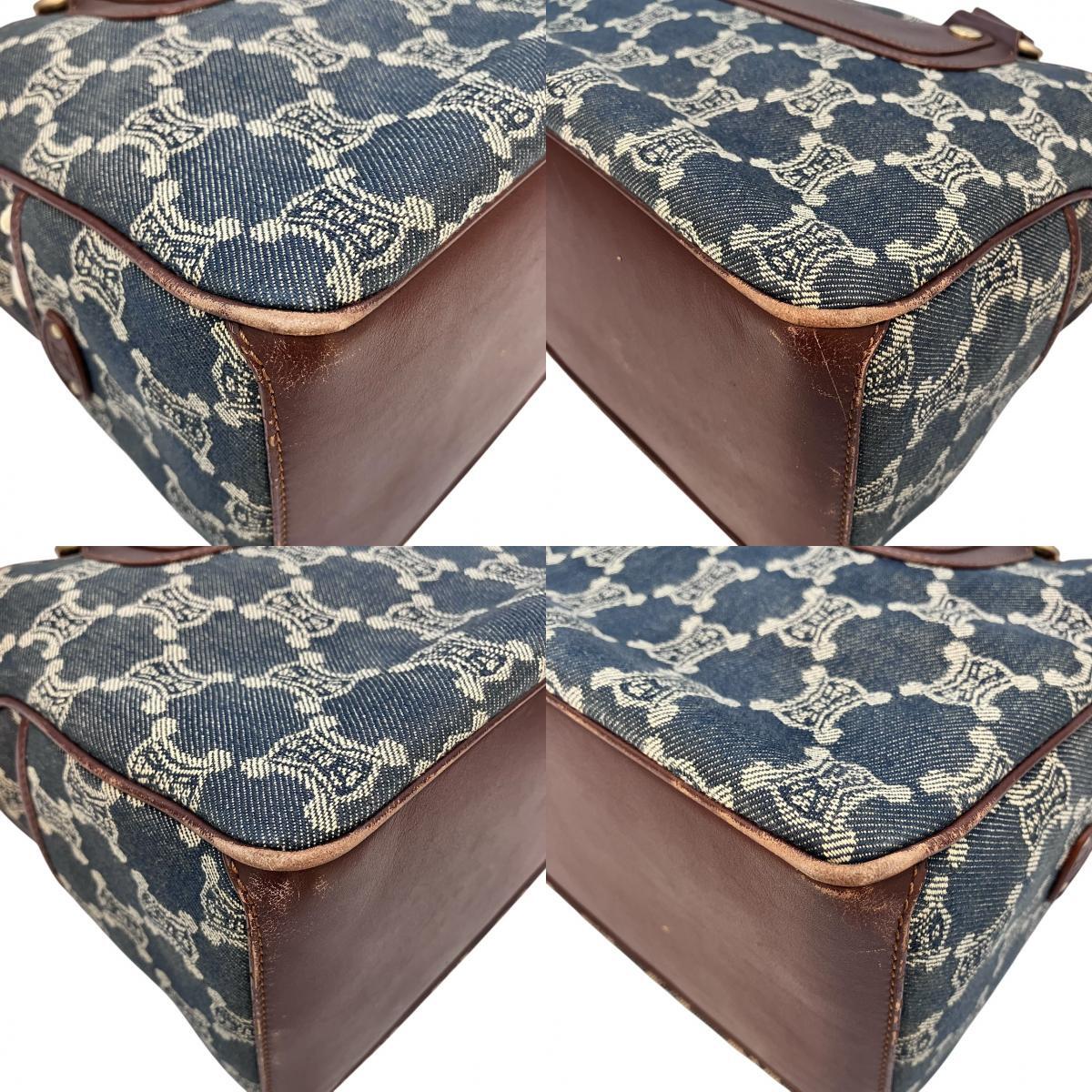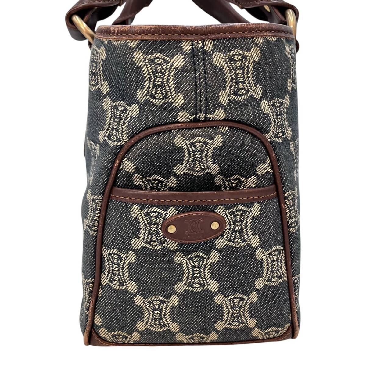 | CELINE セリーヌ ブギーバッグ ハンド バッグ デニム キャンバス インディゴブルー ブラウン レザー ゴールド金具 レディース |