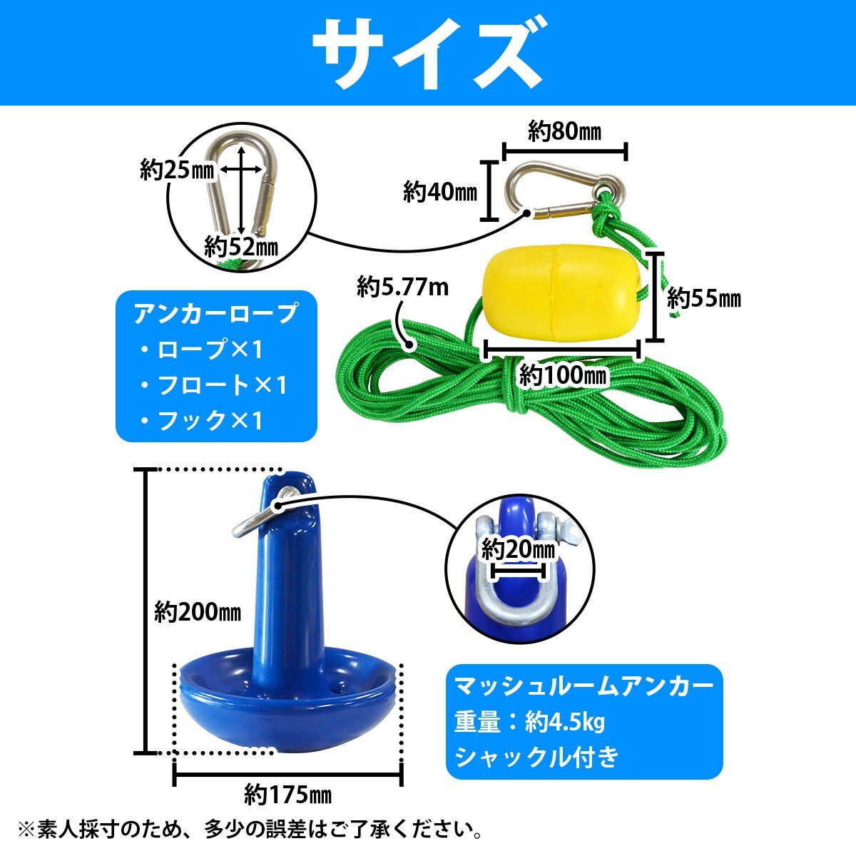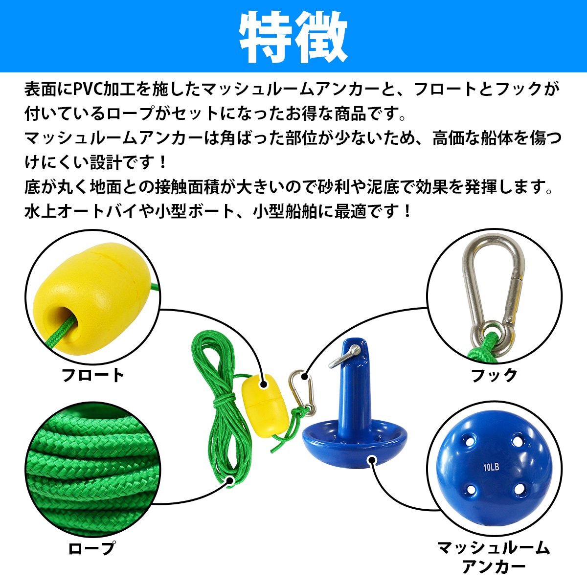 【新品即納】『ロープ アンカー セット』マッシュルームアンカー 10LBS 4.5kg 青/ブルー フロート/ロープ/フック付!ジェットスキー 船