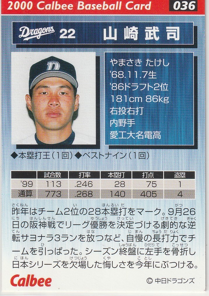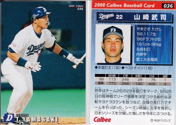 ●2000カルビー 【山崎 武司】 BASEBALL CARD No.036:中日 R5