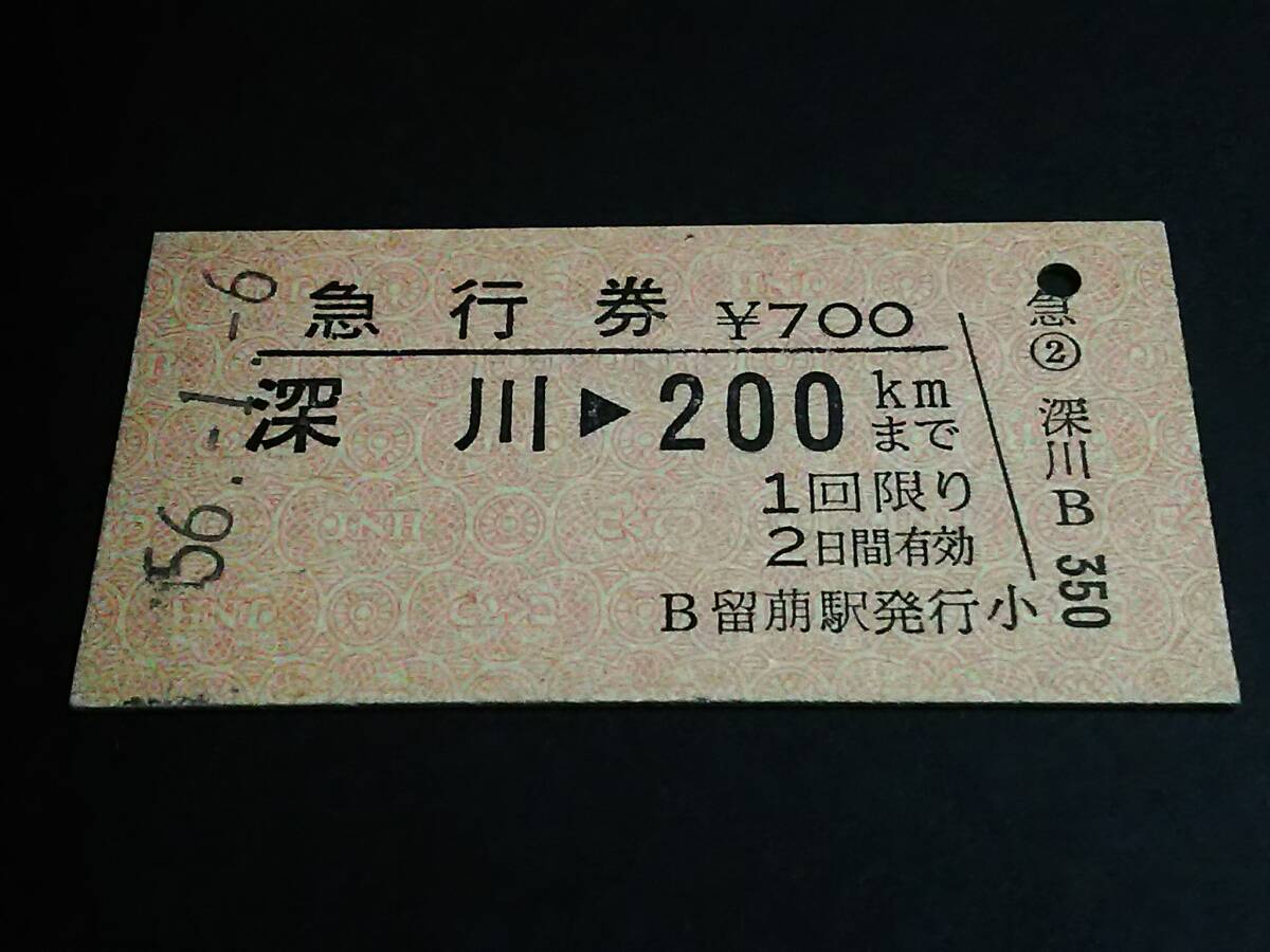 【急行券(A型)[遠隔廃駅発行]】 深川⇒200km S56.1.6 留萠駅発行