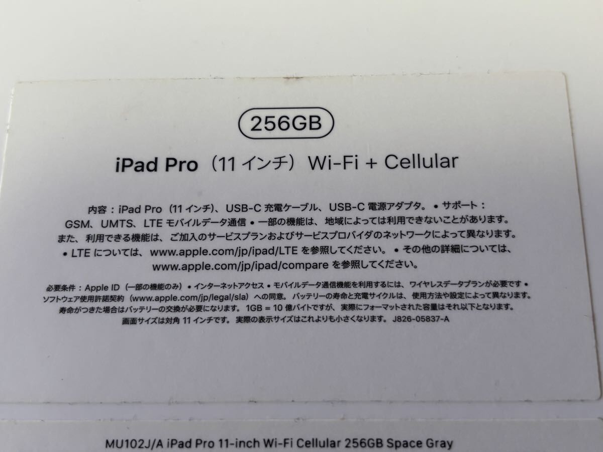 iPad Pro 11インチ Wi-Fi + Cellular 256GB スペースグレイ Simフリー
