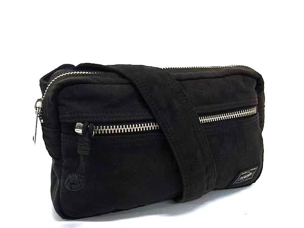 1円 PORTER ポーター キャンバス×ナイロン クロスボディ ボディバッグ ウエストバッグ ショルダー 斜め掛け ブラック系 GD0117