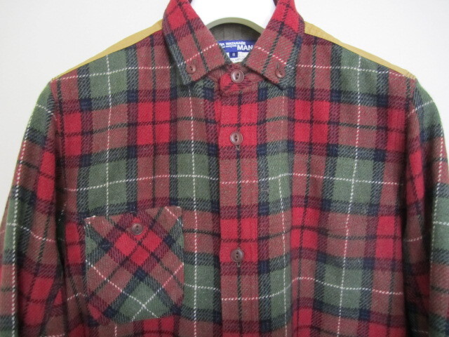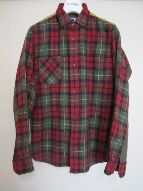 JUNYA WATANABE MAN ウールチェック柄切り替えシャツ ブラウス ジュンヤワタナベマン