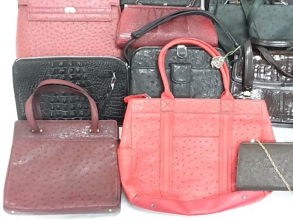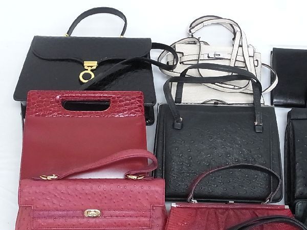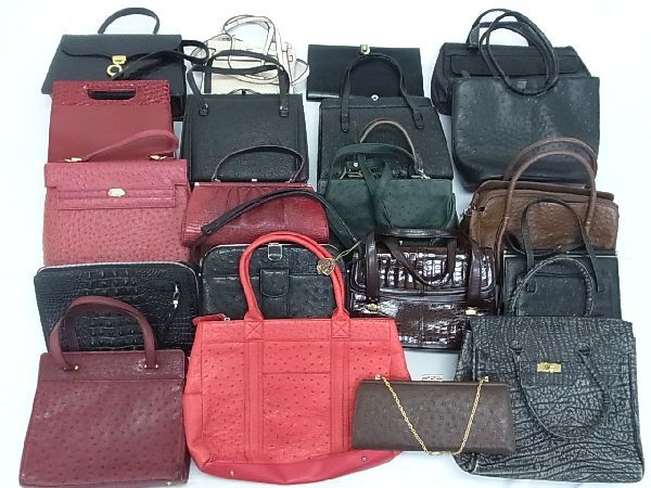 1円 ■極上■本物■JRA公認■ クロコダイル オーストリッチ 等 型押含む ハンドバッグ ショルダーバッグ 等 20点セット まとめ売り GA3955