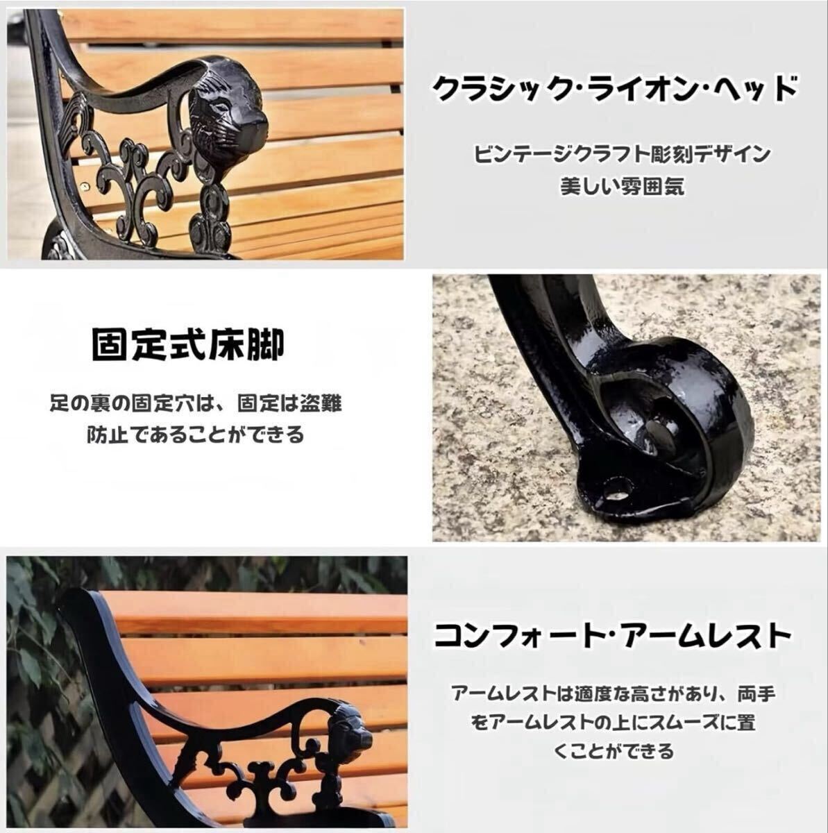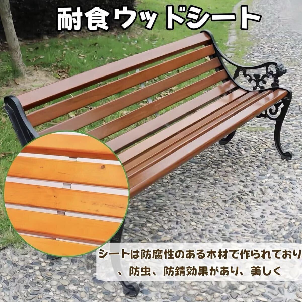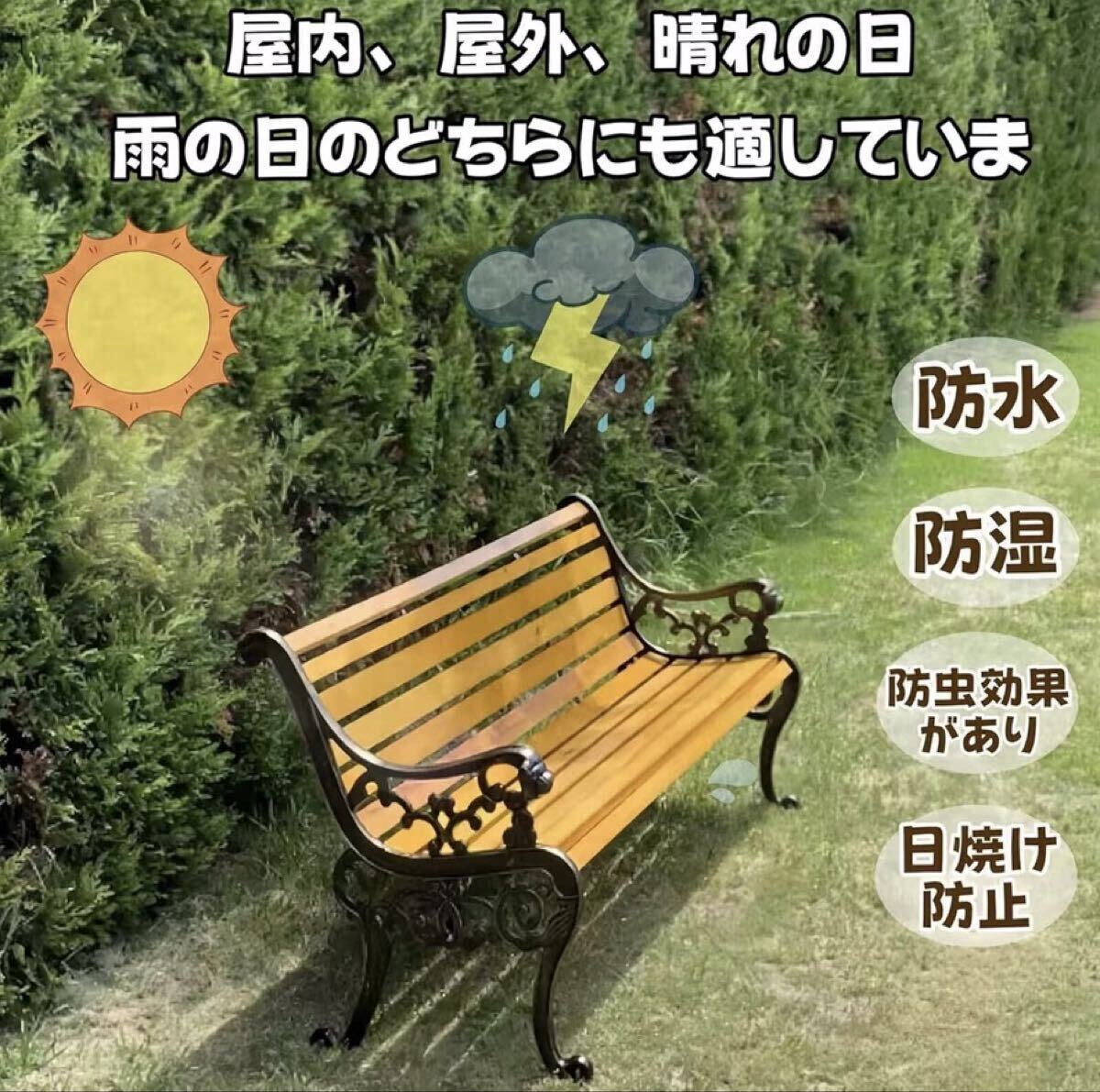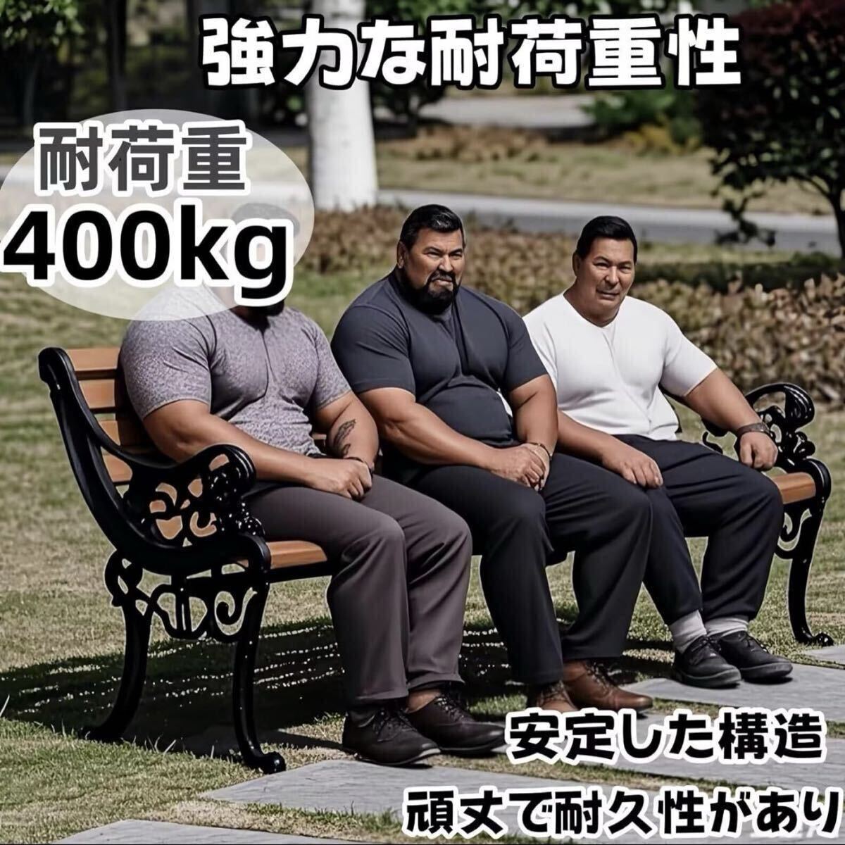 最大約400kgの耐荷重で、大人3人でも安心して座れる高耐久ガーデンベンチです。