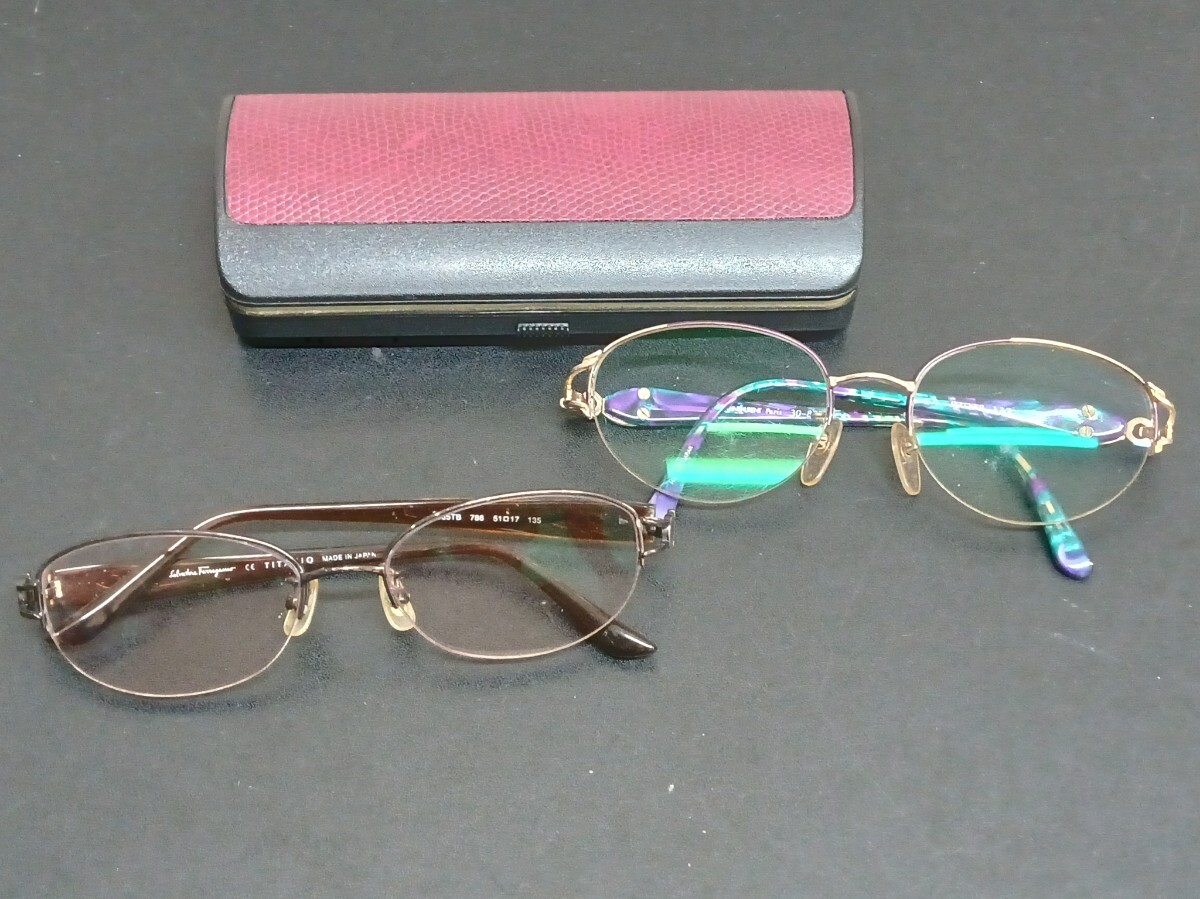 商品名 : D2570 イヴ・サンローラン YSL Ferragamo フェラガモ ガンチーニ メガネ サングラス 眼鏡 ヴィンテージ 2点セット 度あり