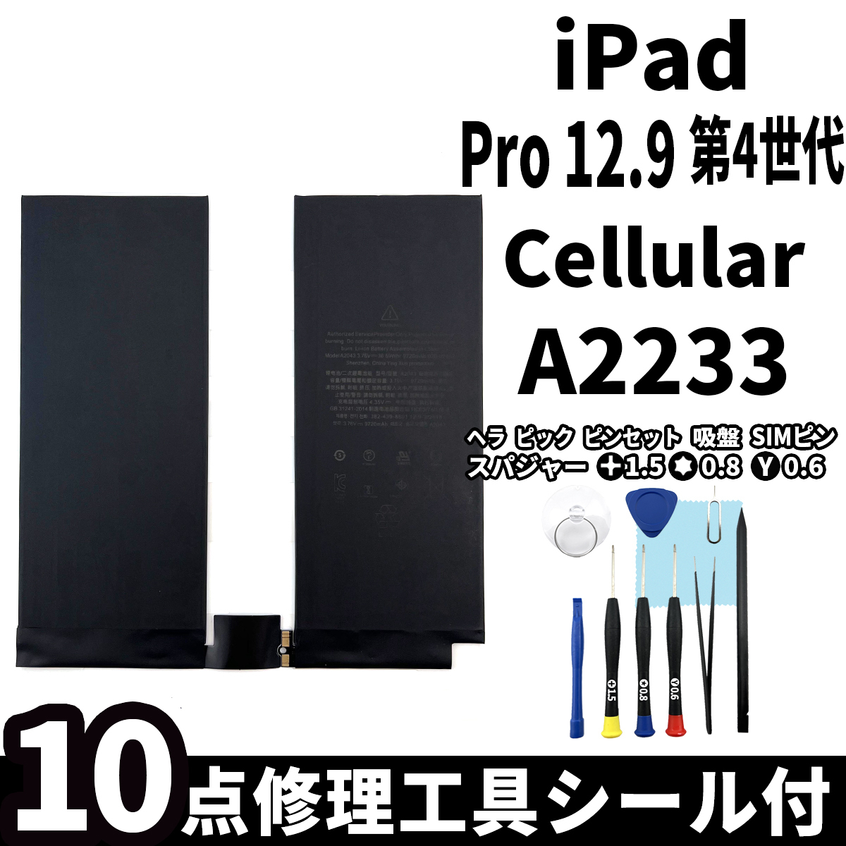 ★iPad Pro 12.9 第4世代用 A2233 内蔵バッテリー電池パック交換キット PSE認証 バッテリー交換専用修理工具 専用両面テープ付セット★
