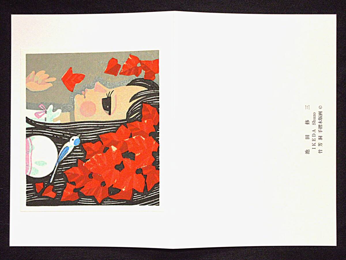| 大きさ:12.7×11.7cm(木版のみの大きさ) 状 態:二つ折り 比較的きれいな状態です 竹芳洞刷り 池田修三 |
