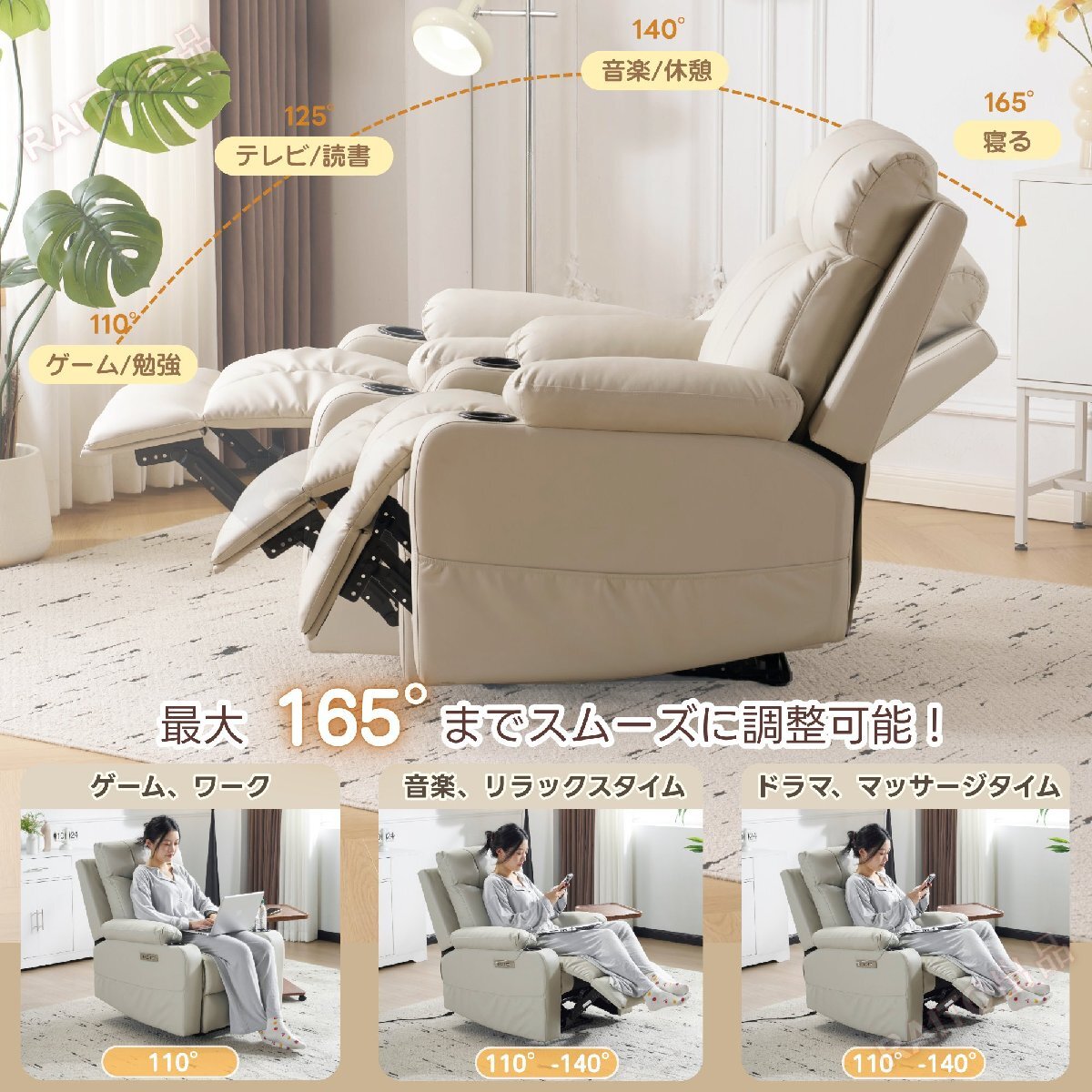 • 【快適な調整体験】前後で最大 165 度の調整が可能で、多様な座り方のニーズに応えられます。快適な半座り姿勢で映画鑑賞や読書をしたい場合でも、完全にリラックスした横たわりで休憩したい場合でも、簡単に実現でき、ユーザーに個人向けの快適な体験をもたらします。
