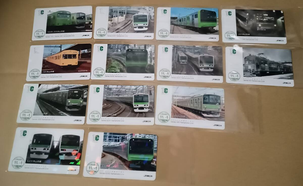 山手線環状運転100周年記念電車カード 13種セット(№12東京・有楽町駅配布カード無し)★重ね捺しスタンプラリー押印済み台紙