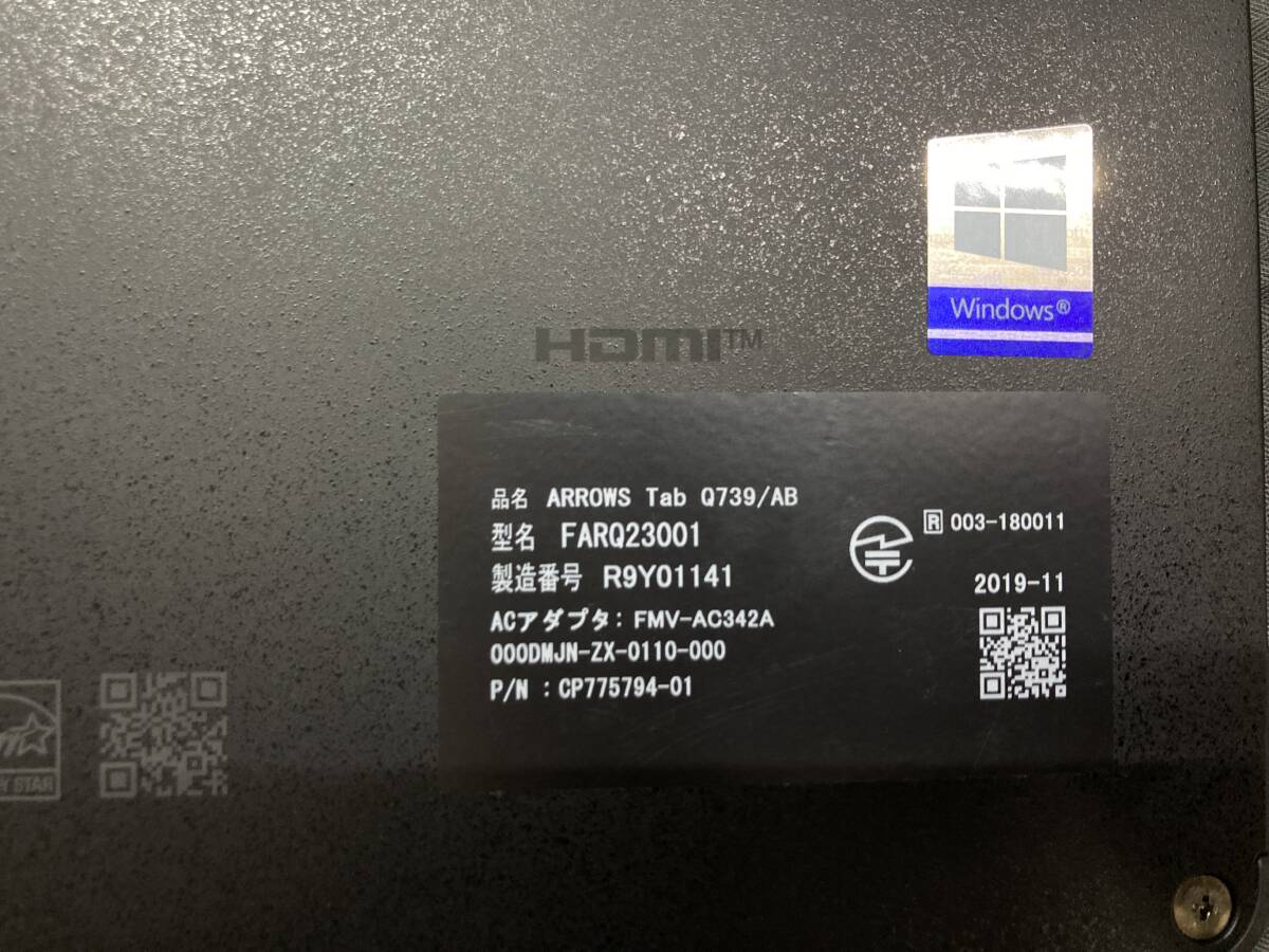 商品名 【バッテリー良好♪】富士通 ARROWS Tab Q739/AB[第8世代/Core i5 8365U 1.6GHz/RAM:4GB/SSD:128GB/13.3インチ]Win11 Office AC付 動作品②