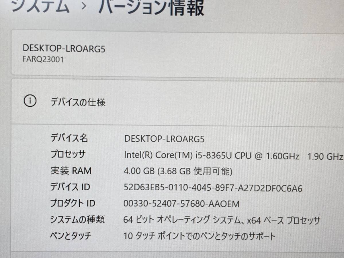 【バッテリー良好♪】富士通 ARROWS Tab Q739/AB[第8世代/Core i5 8365U 1.6GHz/RAM:4GB/SSD:128GB/13.3インチ]Win11 Office AC付 動作品②