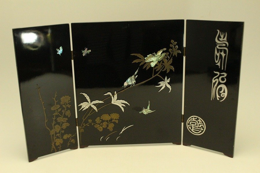 ※二枚折 ハガレ キズ シミアリ。吊り飾 チョーク跡 汚れ シール貼りアリ。古物・中古品でございますので、画像をよくご覧になりご自身の判断にてご入札下さい。 |