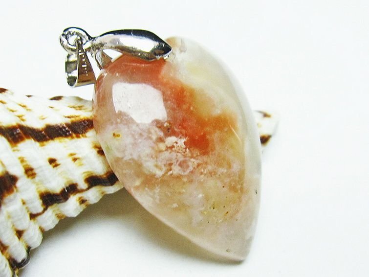 | ■商品名: 桜メノウ チェリーブロッサムアゲート ハート ペンダント ■商品ID: T335-2656 ■商品重量:約 7.7g ■商品サイズ: 高約:29mm 横約:22mm 厚約:8mm 【アゲート(瑪瑙)】 和名では瑪瑙(めのう)といい、アゲートの模様が馬の脳のように見える事からこのような名前が付けられました。 アゲートは赤、緑、青、黄、黒など、様々な色に着色されることで石本来のパワーがさらにアップするといわれており、着色により魅力を増す天然石はアゲートだけとも言えます。 さらにはアゲートを組み合わせるとペアになっているペアアゲート(トレジャーメノウ)は龍穴を生み出すとされ、風水的にも良いといわれています。 アゲートは古来より日本やインドやチベットなどで魔よけやお守りとされてきました。 失敗や不幸を遠ざけ金運や仕事運、成功運とも結び付けてくれる効果のほか、安産のお守りにも良いとされています。 さらに家庭円満や対人関係をスムーズにするなど、オールマイティな効果を持った石です。 ⇒ アゲートをもっと詳しく ◆ワンポイント情報 アゲートはカルセドニーの変種で、染色がされていなくともそれぞれの種類に多様な色があります。 ざっと仲間を挙げてみてもオニキス(黒)、サードニクス(橙色)、ブルーアゲート(青)、グリーンアゲート(緑)、イエローアゲート(黄)、ブルーレースアゲート(縞青)、モスアゲート(縞緑)、天眼石(縞黒)、カーネリアン(橙色)、ジャスパー(多様な縞)などとても多くの特徴と色合いを持っています。 |