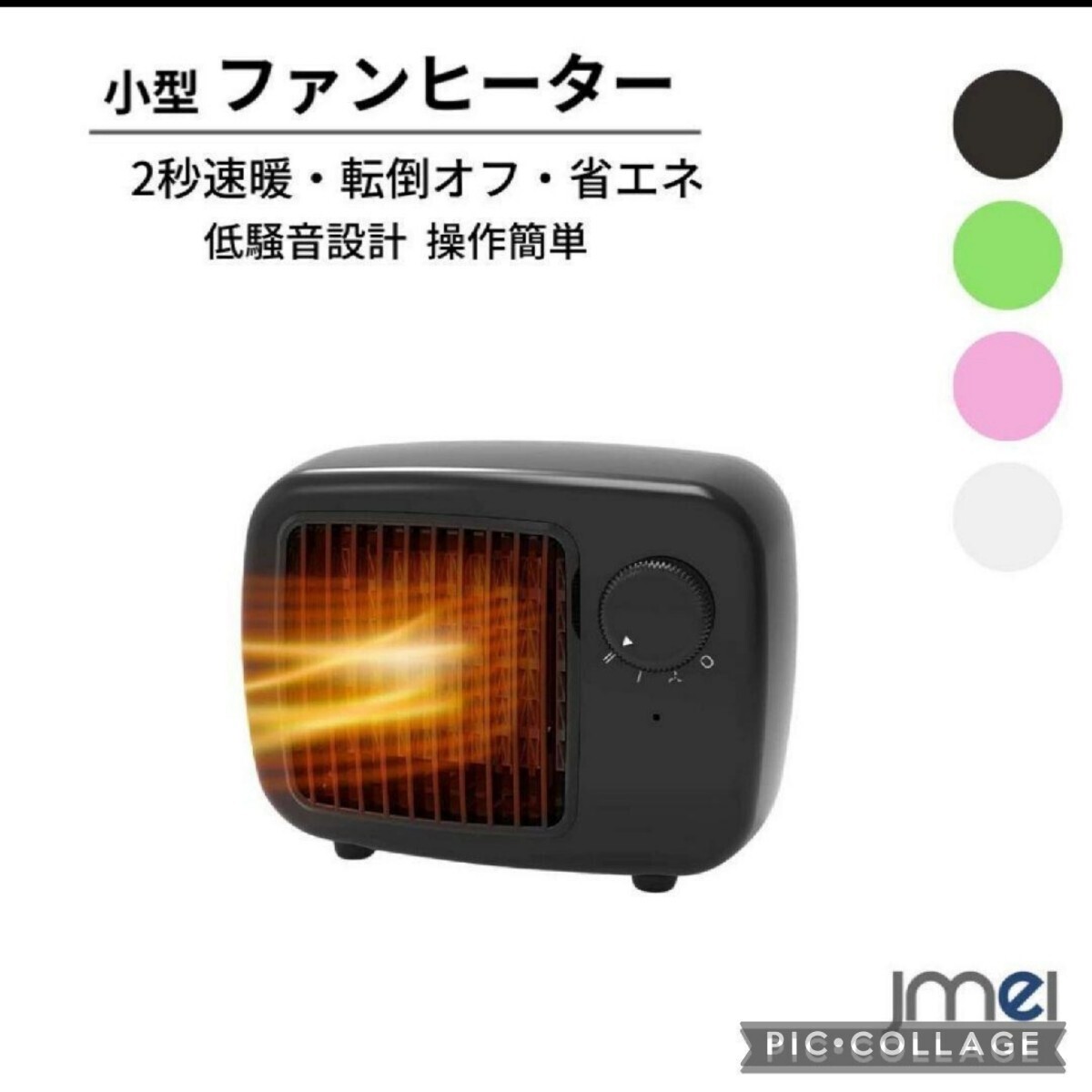 レトロな電気ファンヒーター静音設計 2秒速暖セラミック過熱保護 3段階風量 温風 小型ヒーター 暖房 省エネ 節電PSE認証済み  黒
