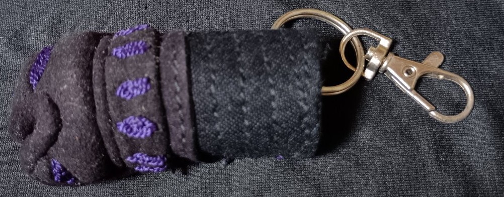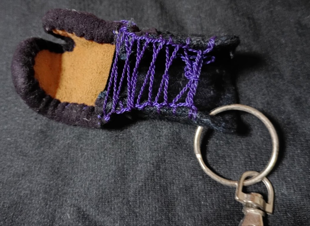 紐部分は明るいむらさきっぽく見えますが、濃い紺色に近いです。