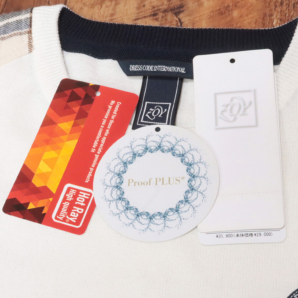 1円/秋冬/ZOY/4(XXL)サイズ/長袖ニット 071424710 クルーネック 撥水 蓄熱 ホットレイ ゴルフ ゾーイ 新品/アイボリー/md378/