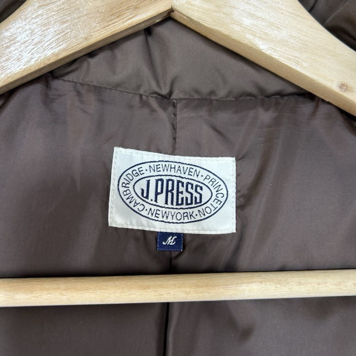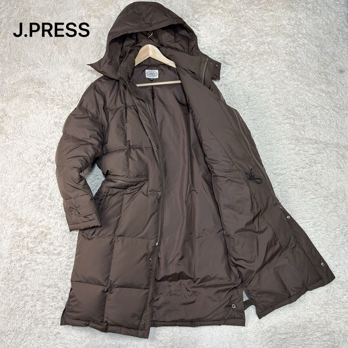 J.PRESSのフード付きダウンコートです。カラーはブラウン系、サイズはMです。オンワード樫山製。