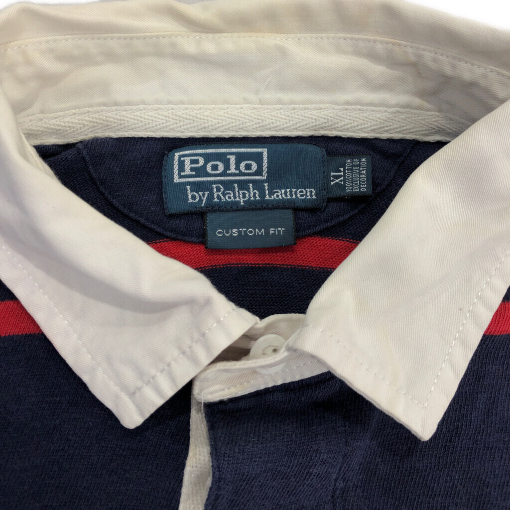 | 【商品管理番号】 U6141 【ブランド】 Polo by Ralph Lauren/ポロ ラルフローレン 【サイズ】 XL 【実寸サイズ】 肩幅:約48cm 着丈:約75cm 身幅:約64cm 袖丈:約66cm 【主な素材】 表地 : コットン 【色】 ネイビー 【仕様】 ボーダー 【状態】 汚れ:襟 特記事項:変色、色褪せ、色移り | |||