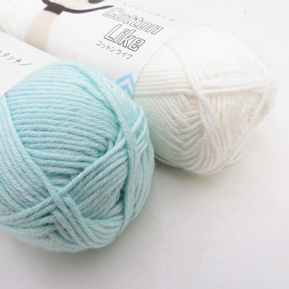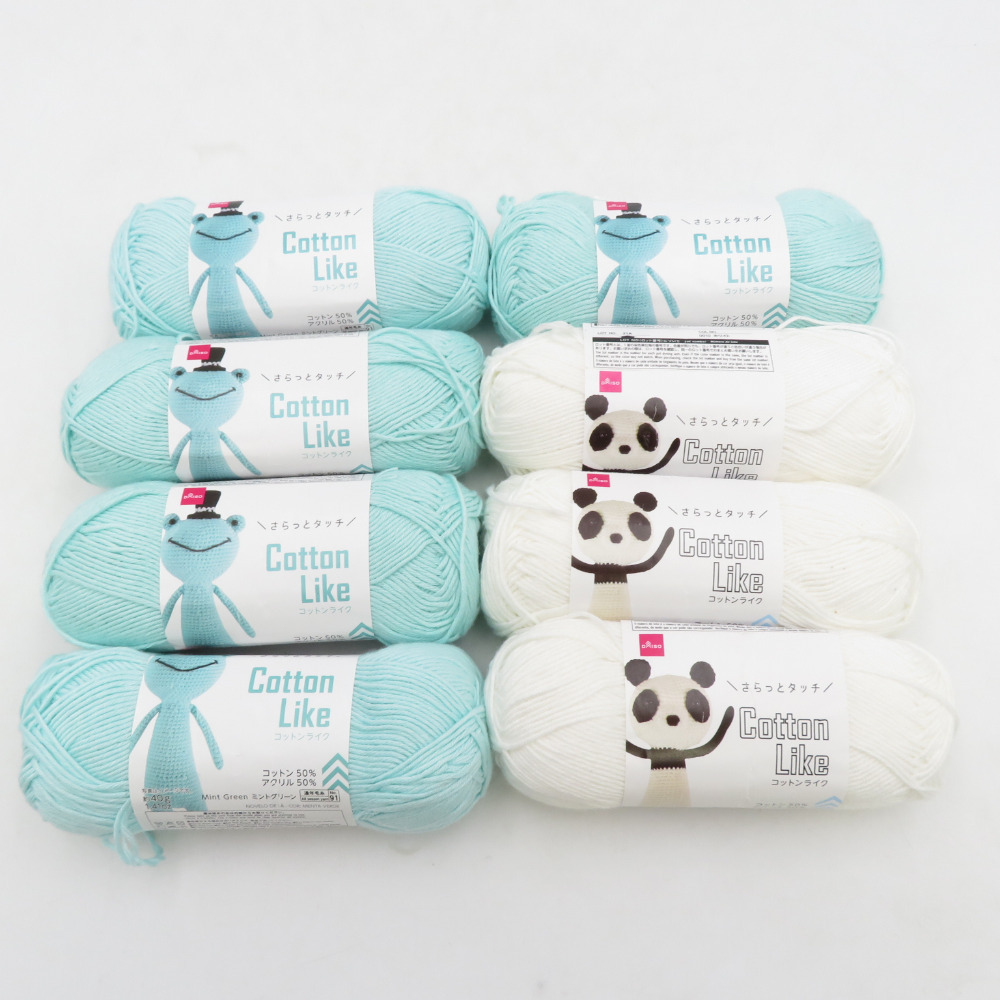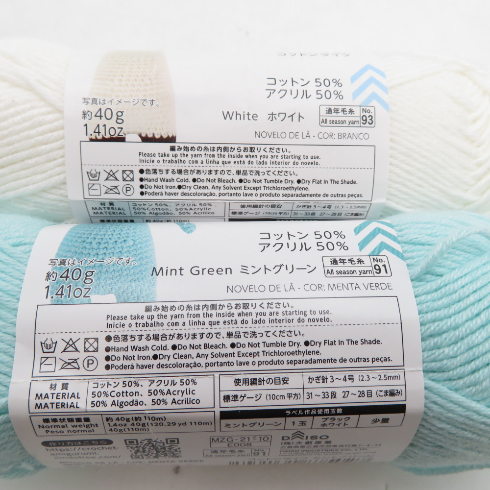 | DAISO ダイソー 毛糸 Cotton Like コットンライク 8玉セット 1玉40g 約110m コットン アクリル 白×3玉 ミントグリーン×5玉 未使用品 |