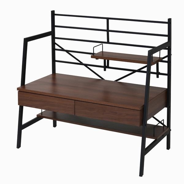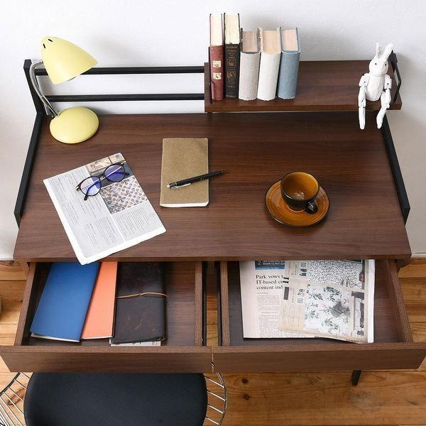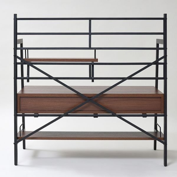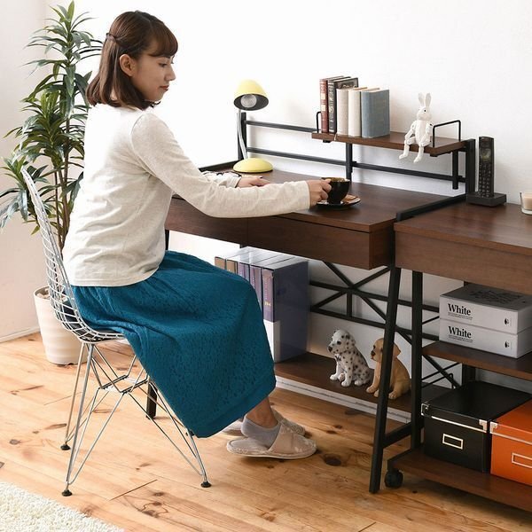 ハイ・ローの2wayで使用できるフレキシブルなデスクの90幅タイプ。 棚はひっかけるだけなので、左右はフリーにレイアウトできます。 本体にはメラミン樹脂シートを採用しているので、耐熱性・耐水性・耐傷性に優れています。 木目とスチールの組み合わせがスタイリッシュなデスクです。 |