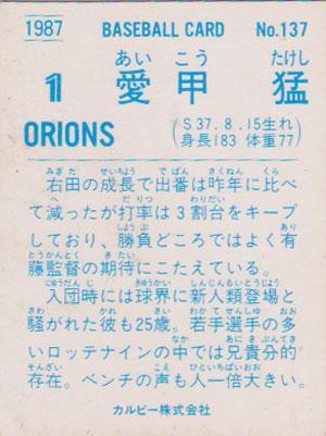 ★トレーディングカード★1987カルビープロ野球チップス【#137 愛甲猛】★