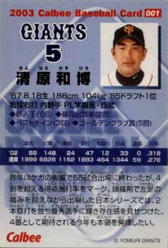 ★トレカ★2003カルビープロ野球チップス第1弾【#001 清原和博 巨人】★