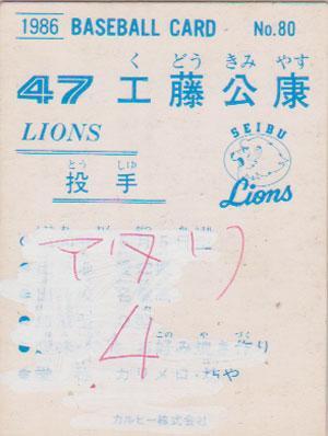 ★トレーディングカード★1986カルビープロ野球チップス【#080 工藤公康】★