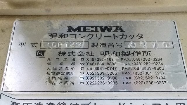 | 商品説明 | (1円スタート!) MEIWA 明和製作所 コンクリートカッター MCP120 建設 舗装 土木工事 動作良好 A5034[21-1-1-A]:930193 | ||||||||||||||||||||||