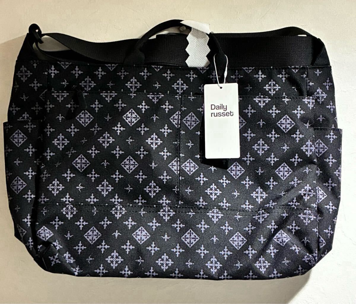 【新品】デイリーラシット モノグラム2way ショルダーバッグ Daily russet ブラック 普段使い レディース 通学 通勤 ショッピング 肩掛け