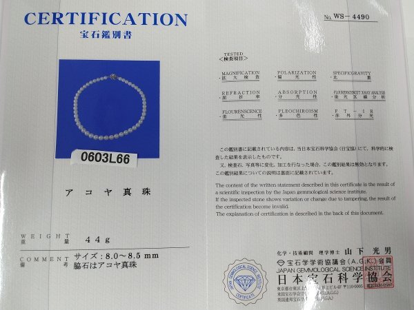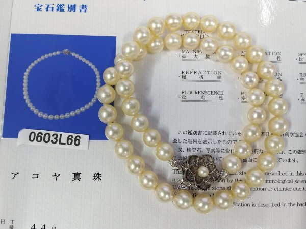 0603L66 本真珠 あこや ネックレス 宝石鑑別書付 約44g