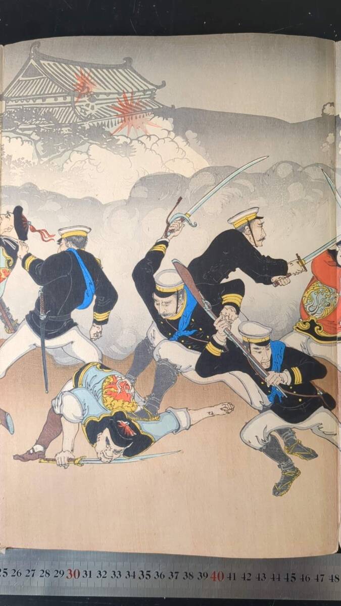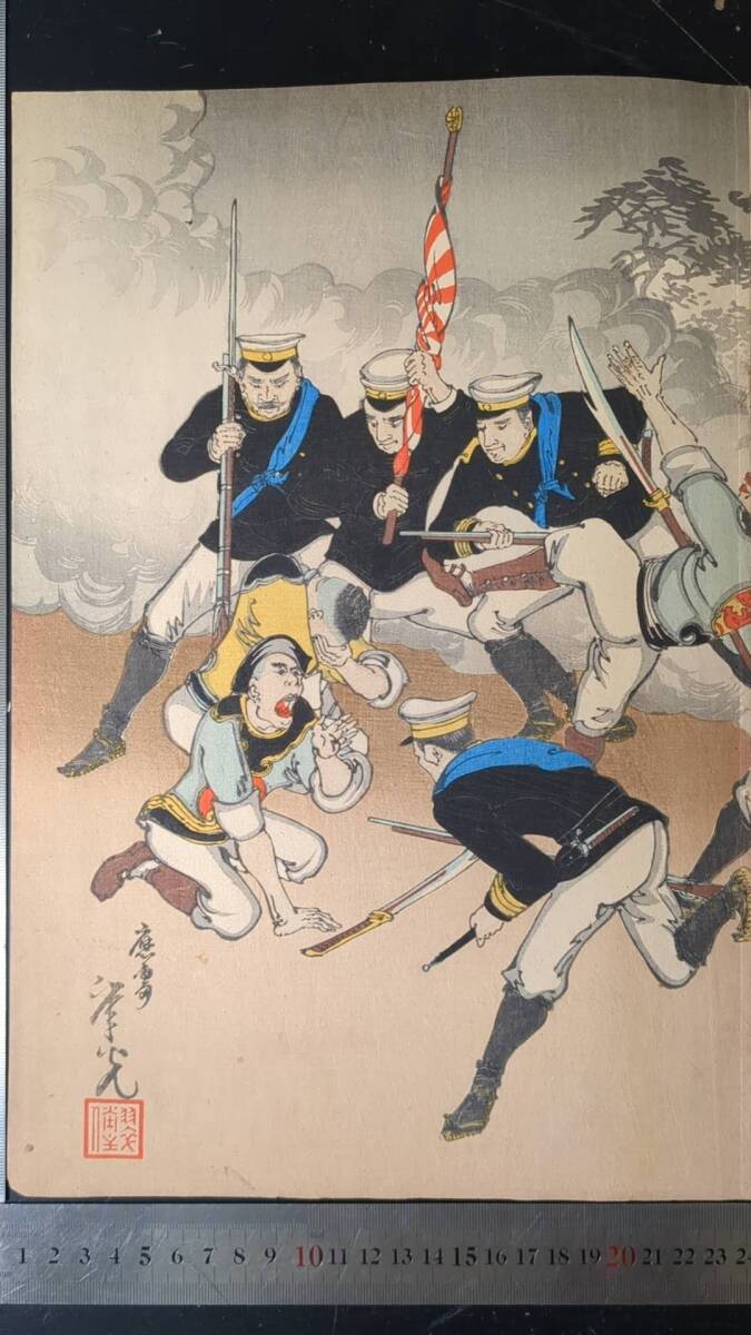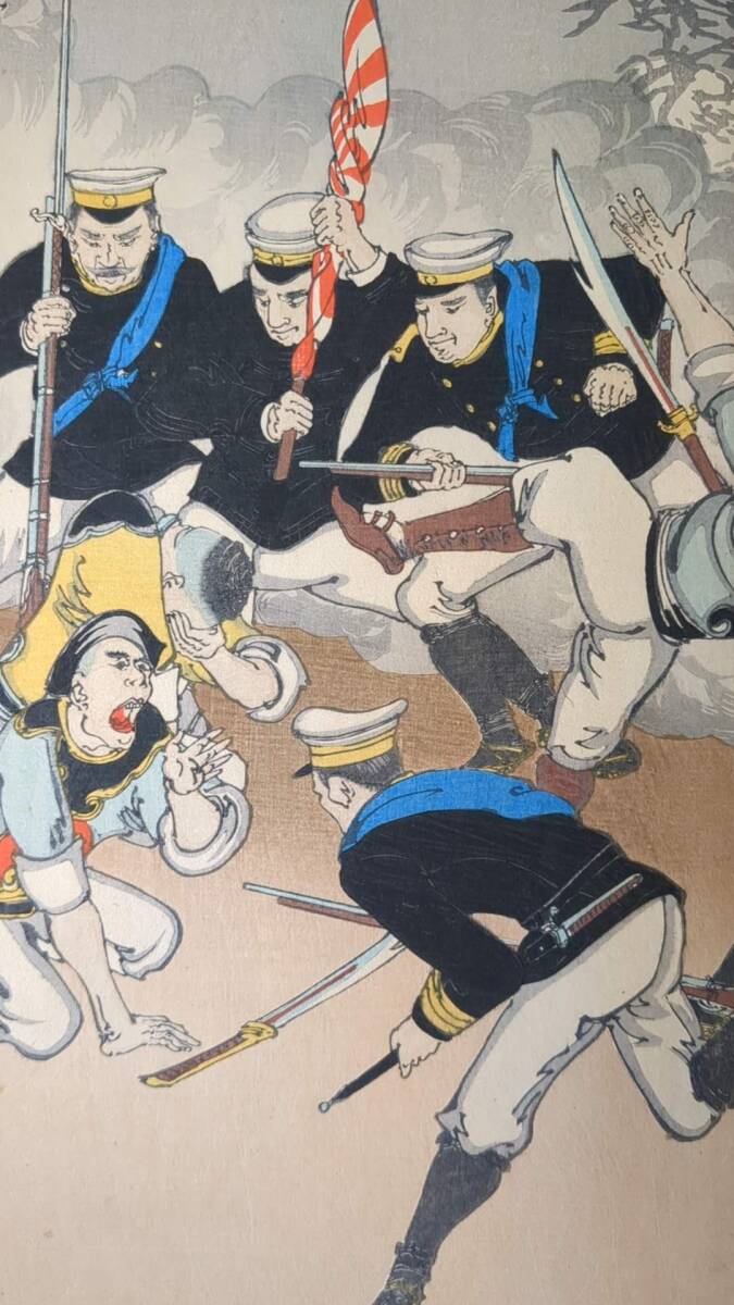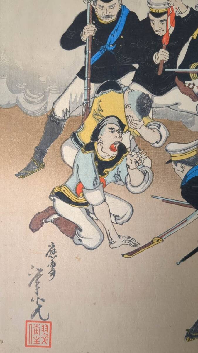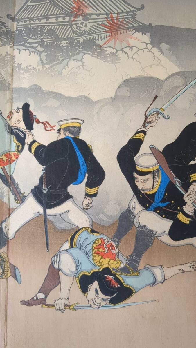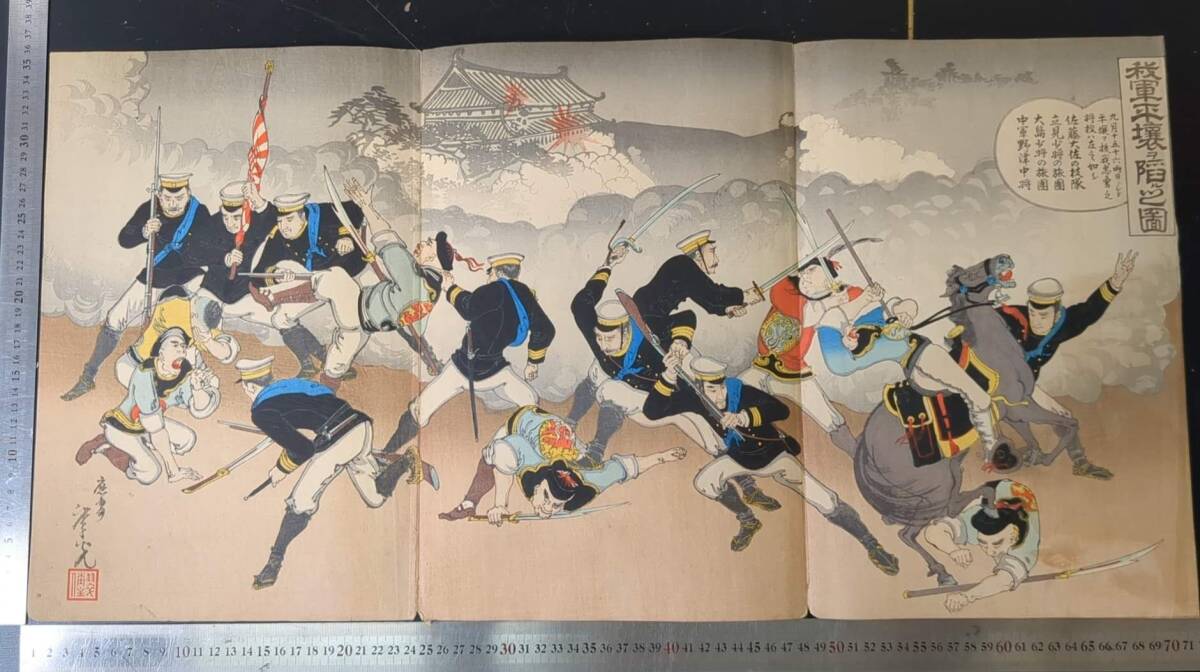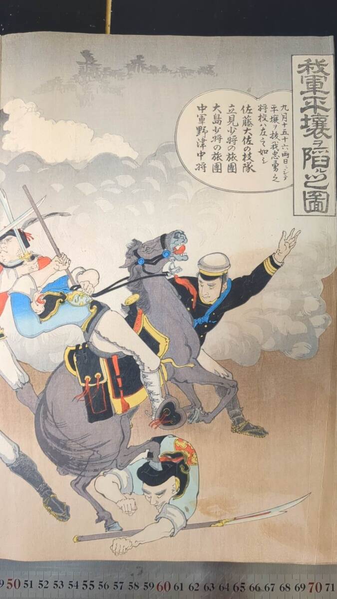 S092910浮世絵 真作 版画  年光 我軍平壌ヲ陥ル之図 木版画 錦絵