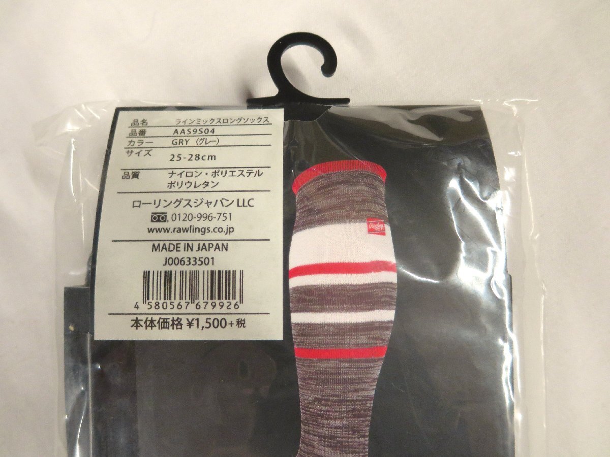【未使用】 Rawlings/ローリングス 野球 ソフトボール ラインミックス ロング ソックス (AAS9S04) グレー 25-28cm 日本製