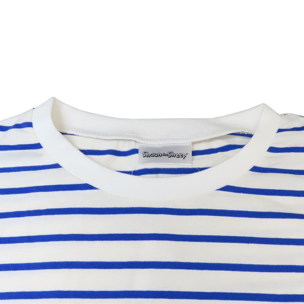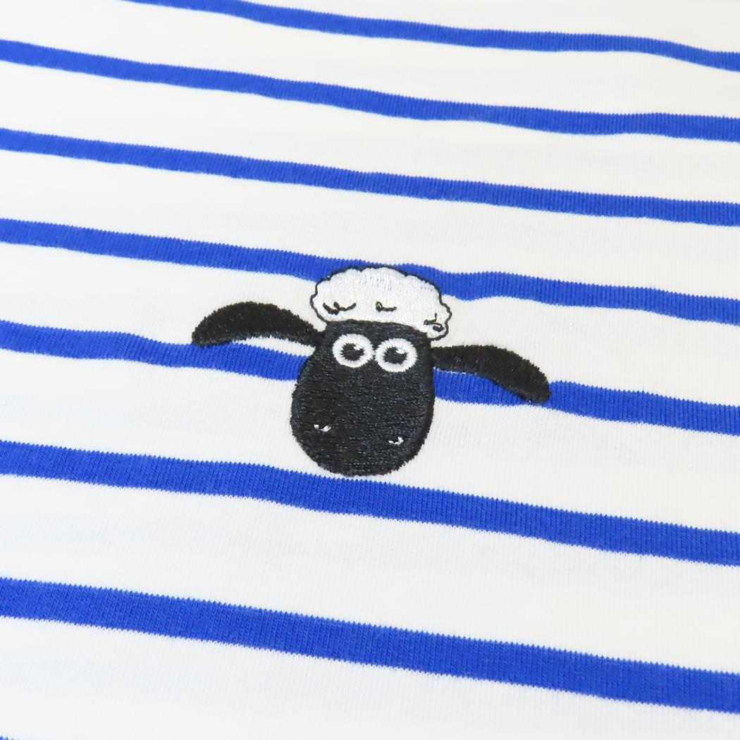 ひつじのショーン Tシャツ 刺繍ボーダーロンT フリーサイズ ホワイトxブルー ワタナベ 長袖 ロングTシャツ T-SHIRTS