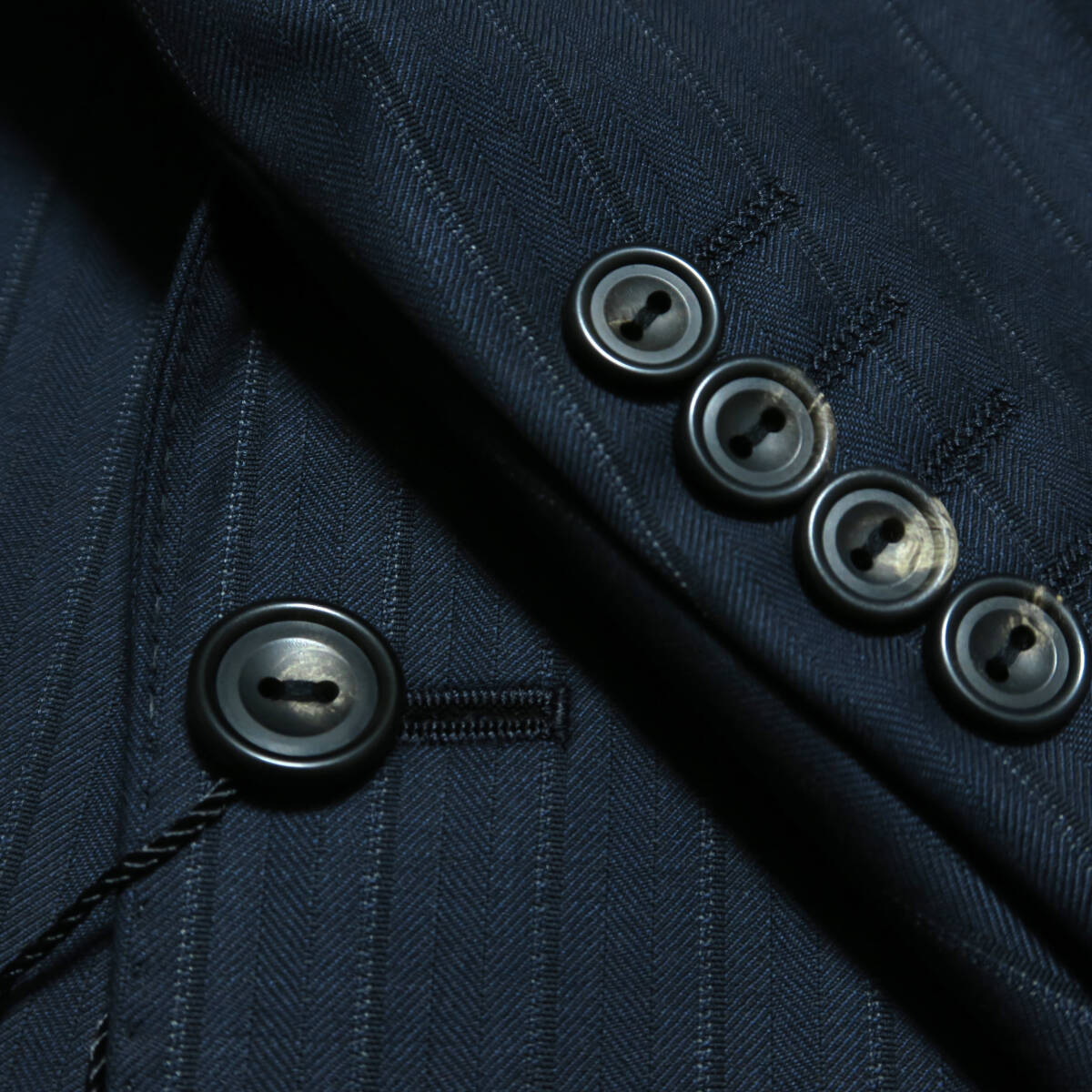 | 紺色系 ビジネスシーンに最適でありながら、ドーメル生地特有の美しい光沢がエレガンスを引き立てます。シャドーヘリンボーン ストライプ 光の当たり方で表情を変える約4mm幅のシャドーヘリンボーン織りをベースに、約1.5cm間隔で上品なストライプが入った柄行きです。遠目には無地ライクに見えつつ、近くでは奥行きのある織り柄が浮かび上がり、高い付加価値とセンスの良さを演出します。 ※生地がアップになった画像の色目が実物に近い色目になっております ※画像は照明の関係により、実際よりもやや明るく見える場合がございます。またパソコンなどの環境により、若干製品と画像のカラーが異なる場合もございます。 | ||