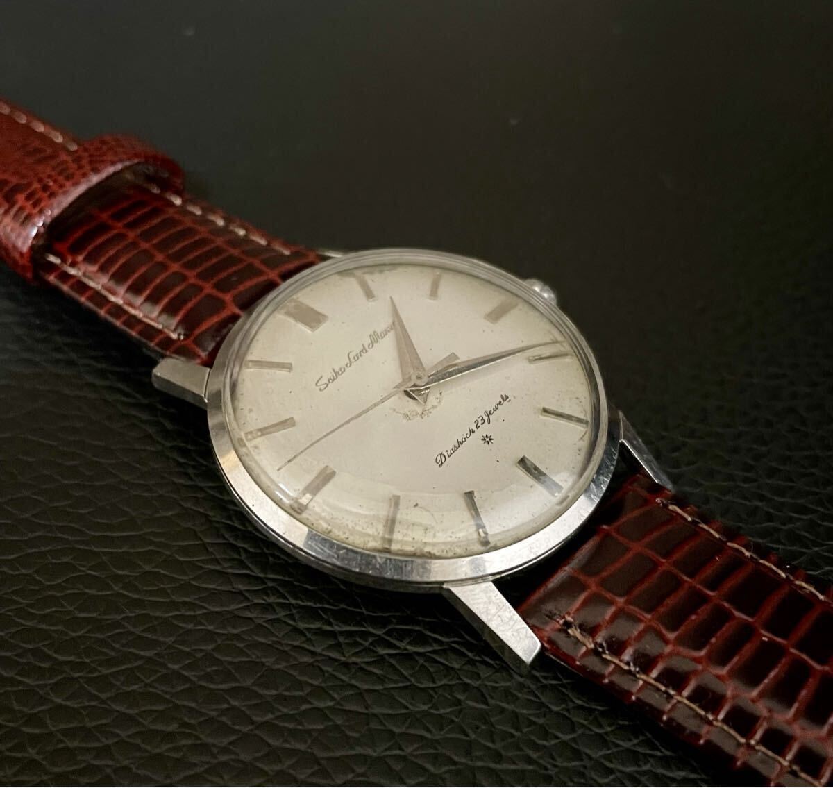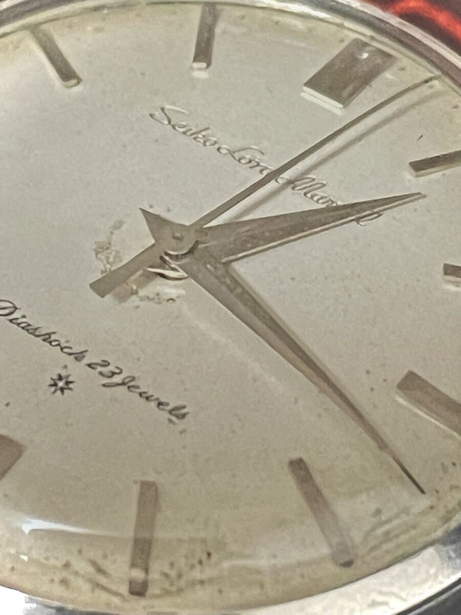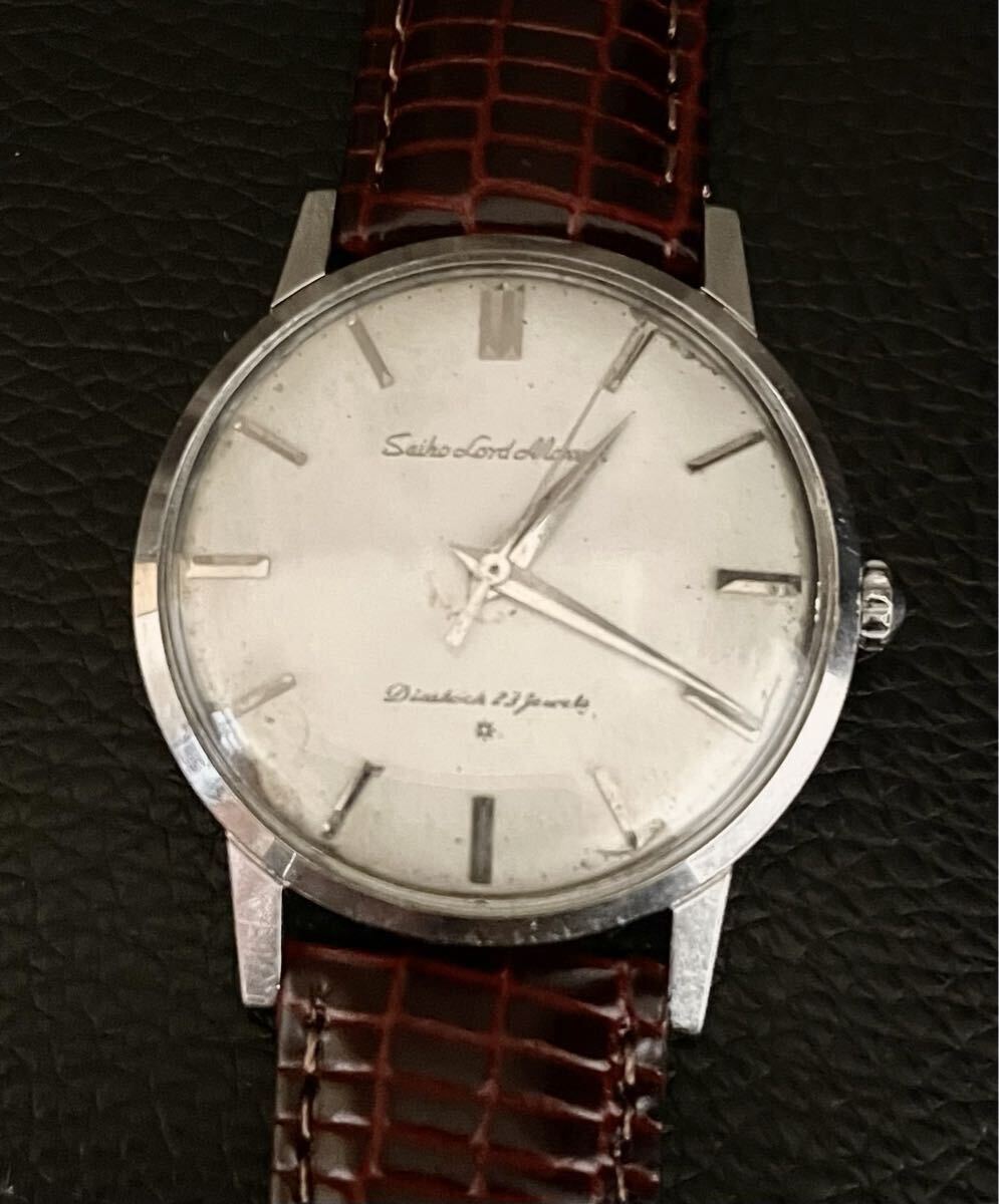 セイコー初の高級時計にしてグランドセイコーの前身、「セイコーロードマーベル」の希少な初期型、文字盤にロゴが彫り込まれた個体になります。