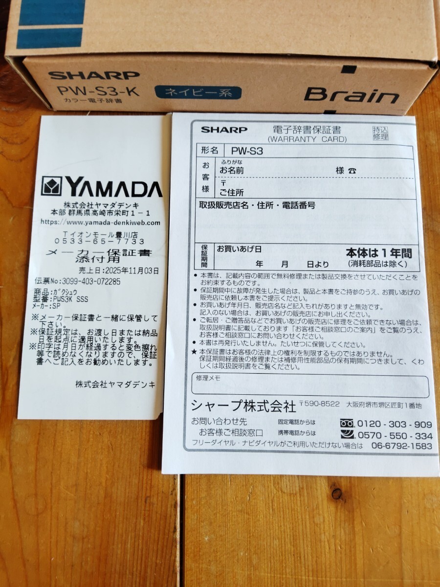 ★ 新品未使用 SHARP シャープ Brain PW-S3-K  1年間保証付き ★